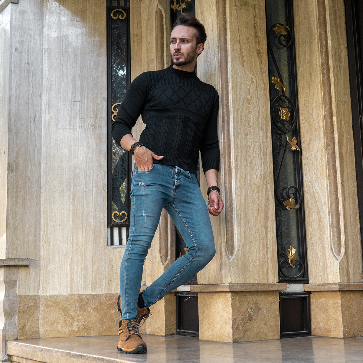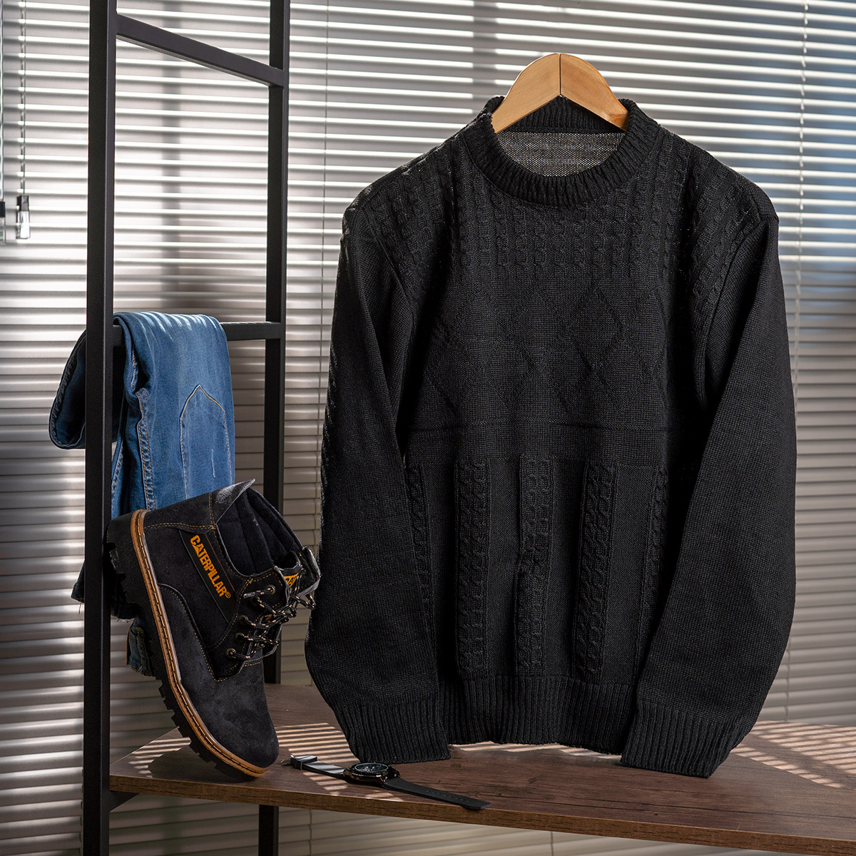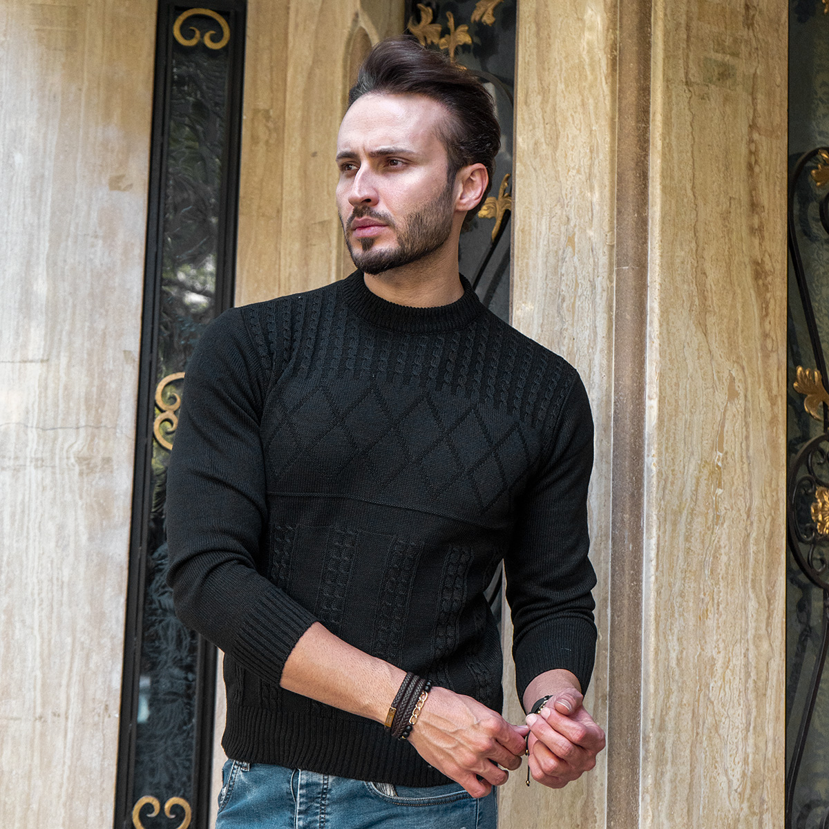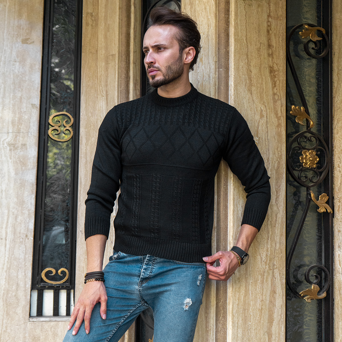 پلیور بافت یقه گردمردانه مشکی مدل Yoram