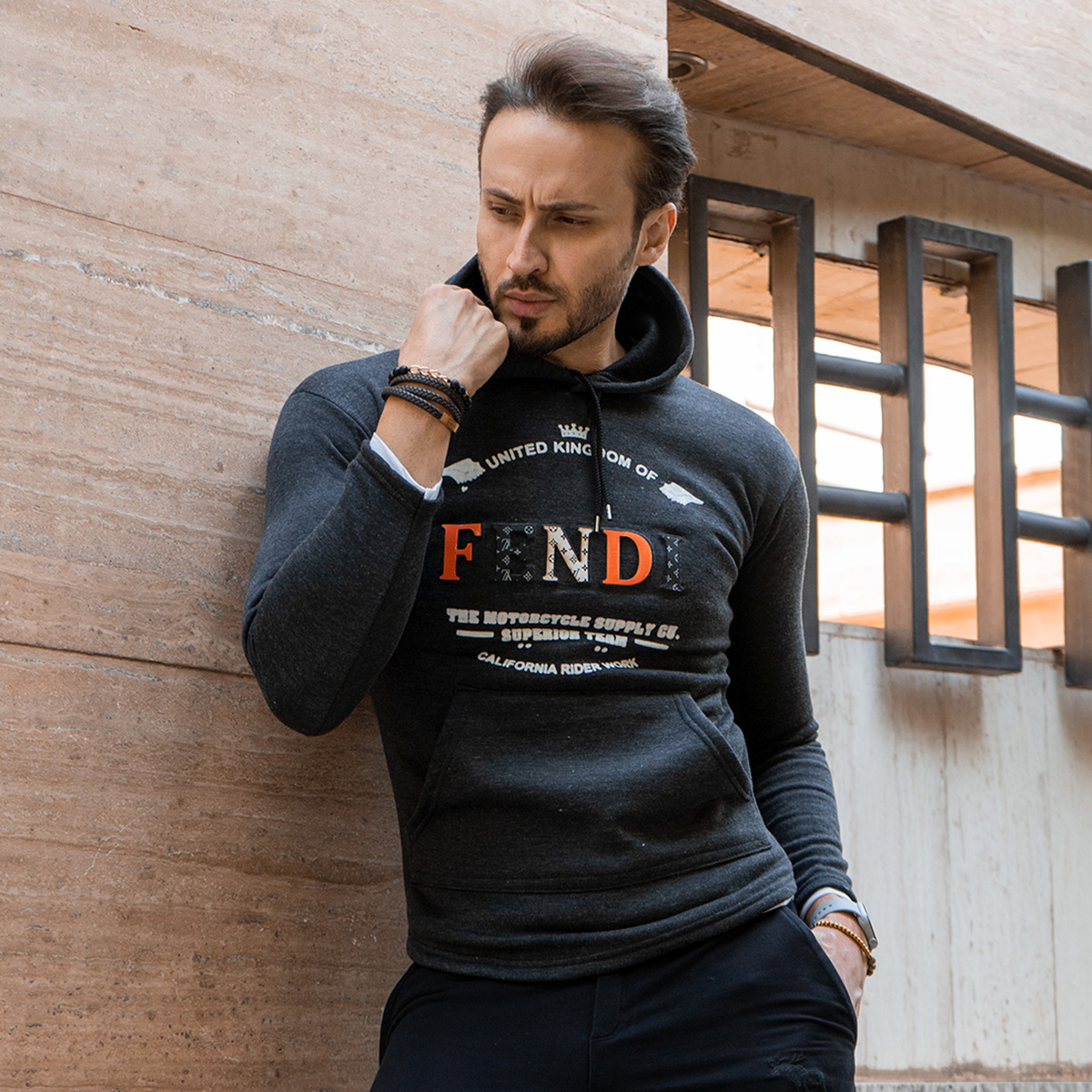 هودی مردانه مدل fendiذغالی