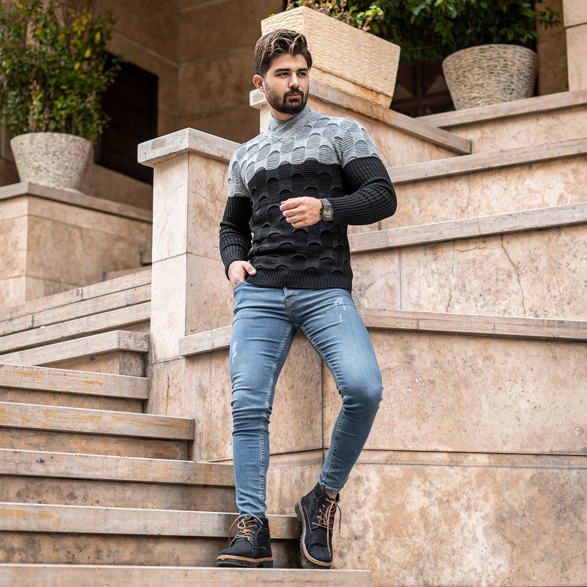 پلیور دورنگ طوسی مشکی مردانه مدلArkia