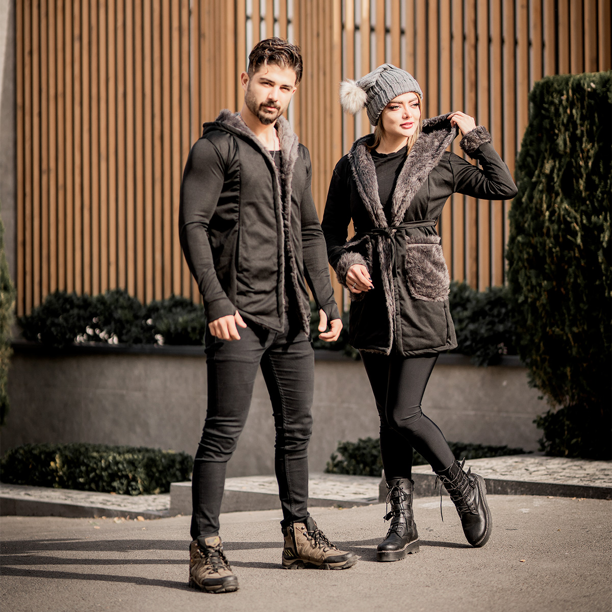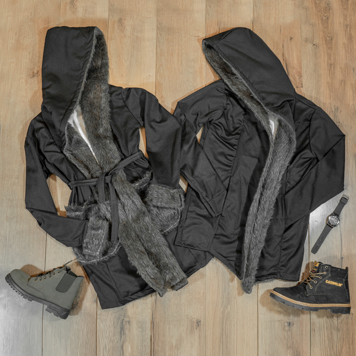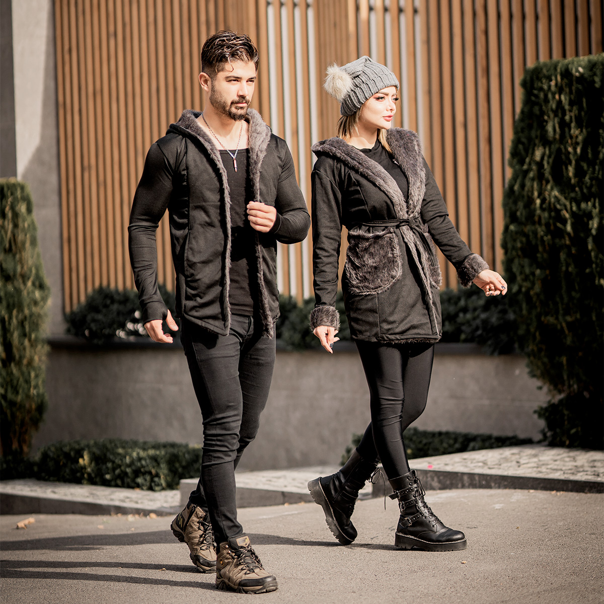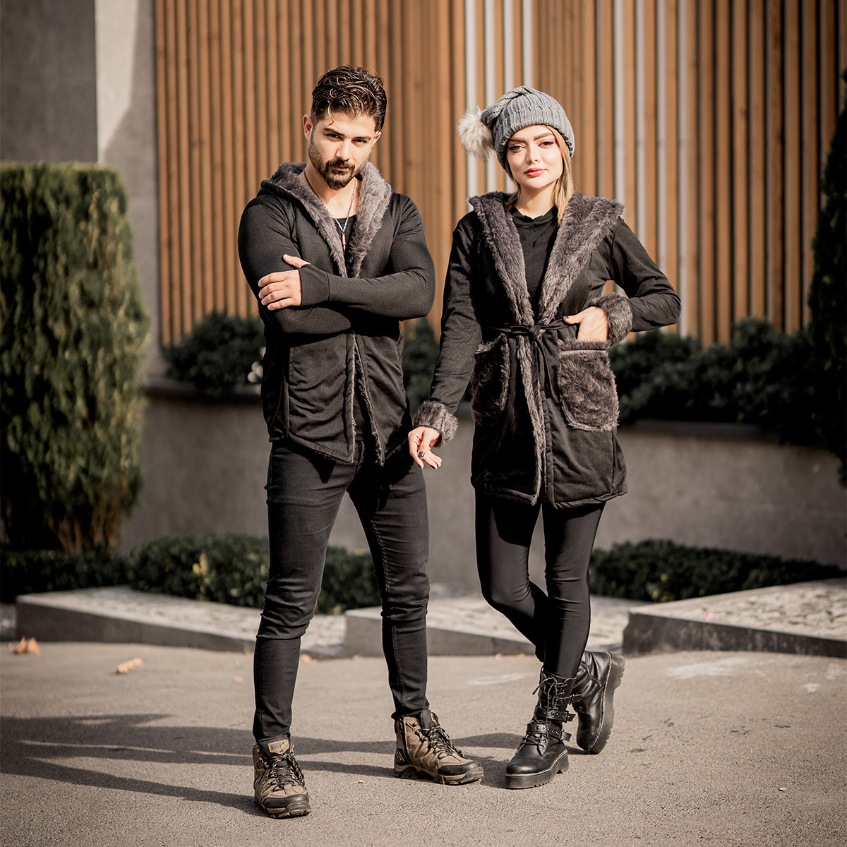 ست شنل مردانه و زنانه خزدار طوسی مدلnivo