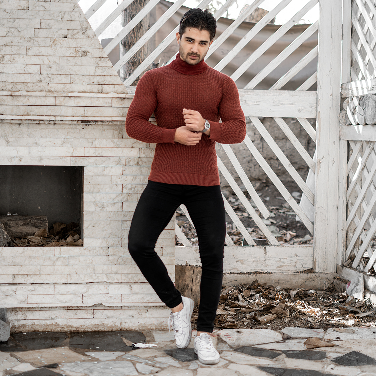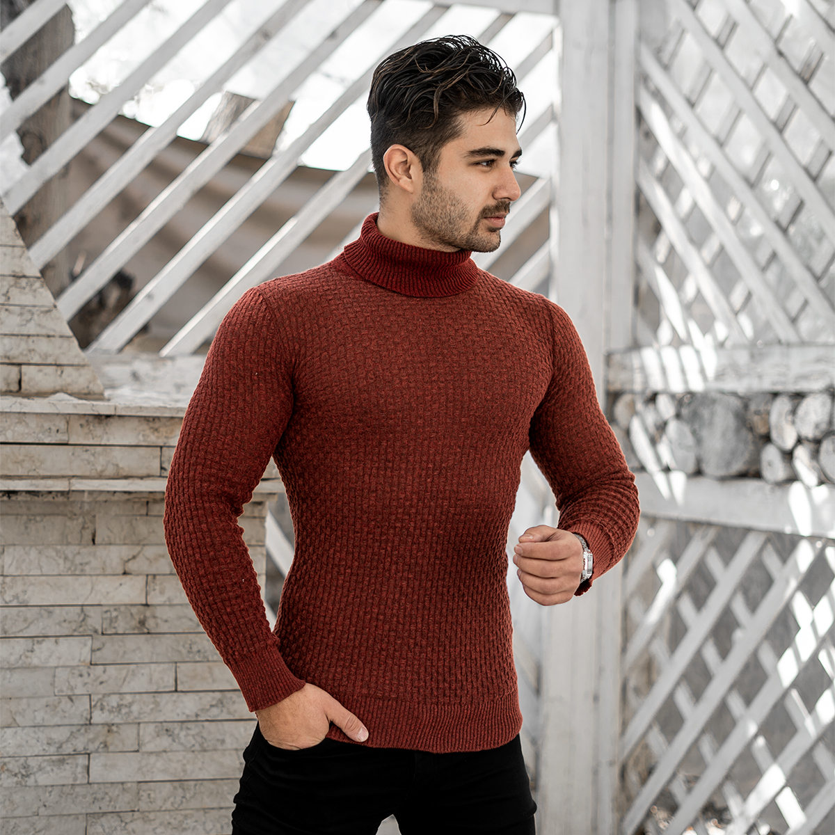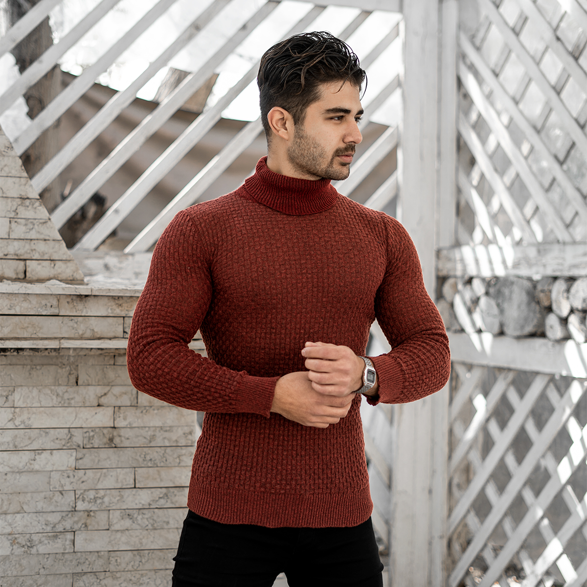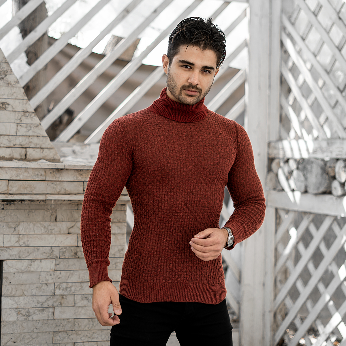 پلیور یقه اسکی مردانه زرشکی مدل Oktav