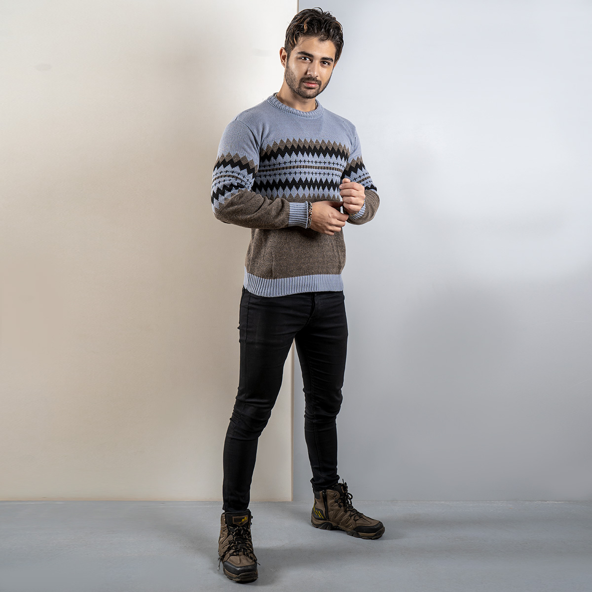 پلیور ژاکارد طوسی قهوهای (T)مدل aroni