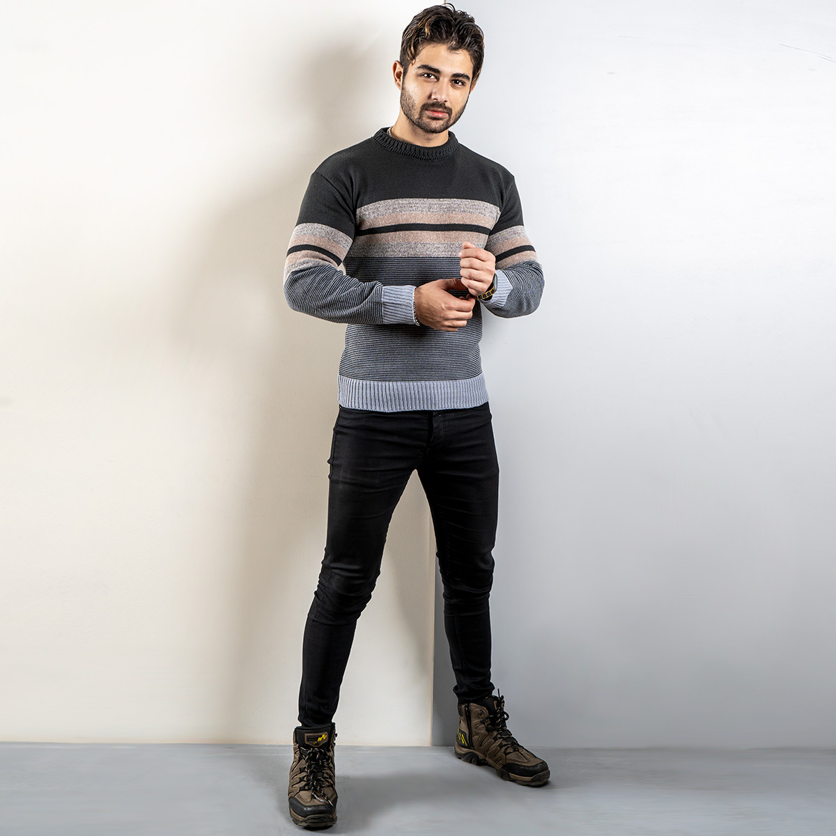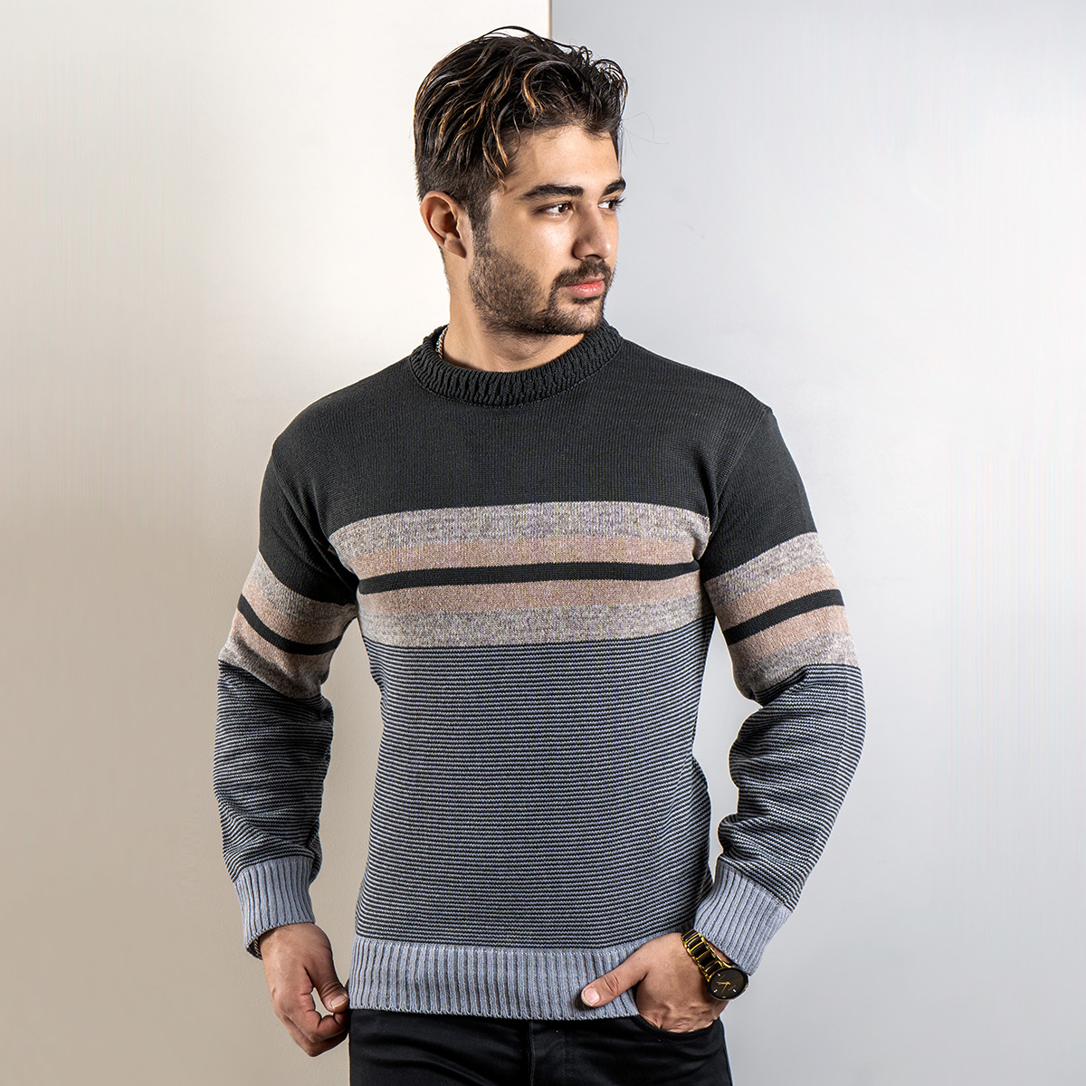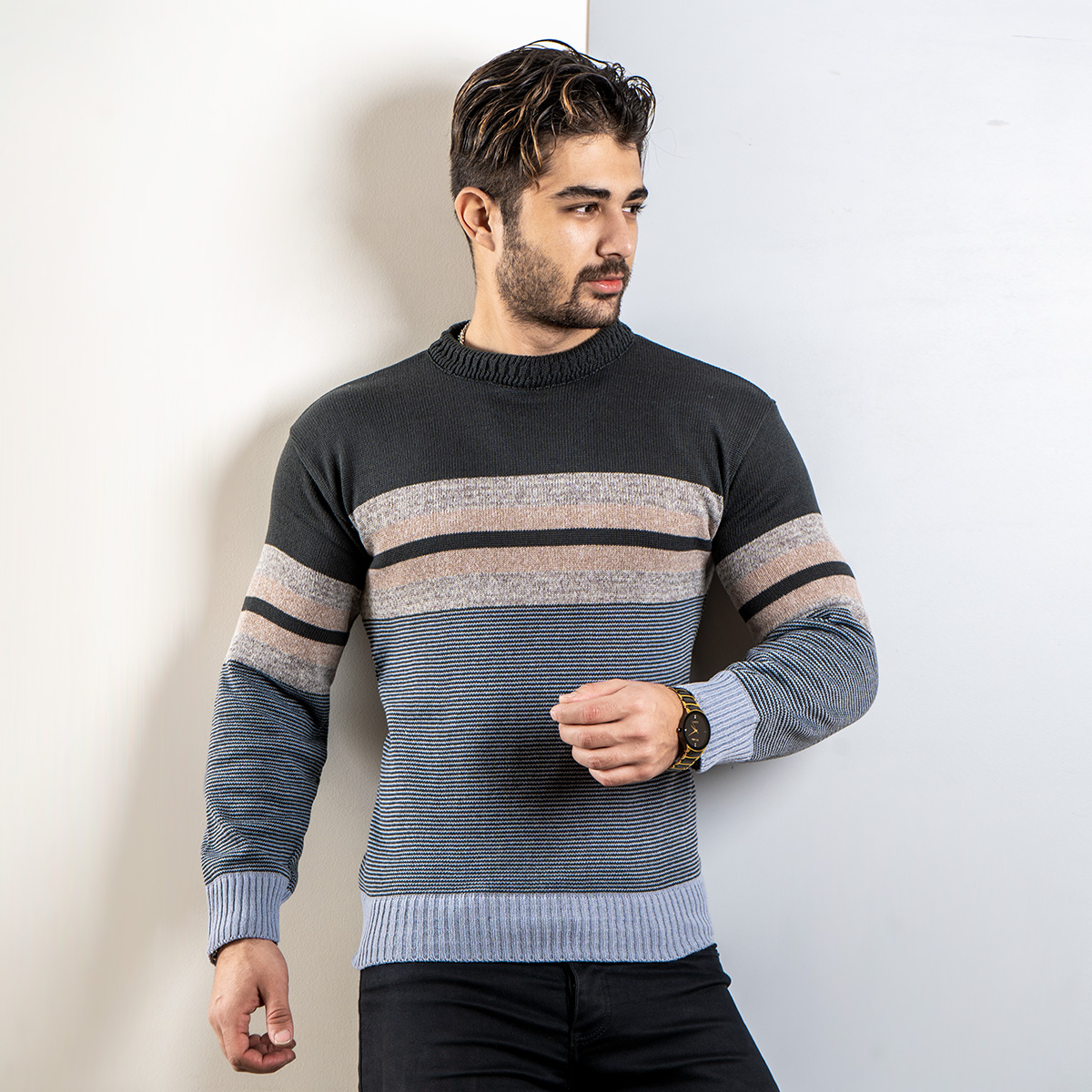 پلیور راه راه مشکی کرم(T) مردانه مدل yalan