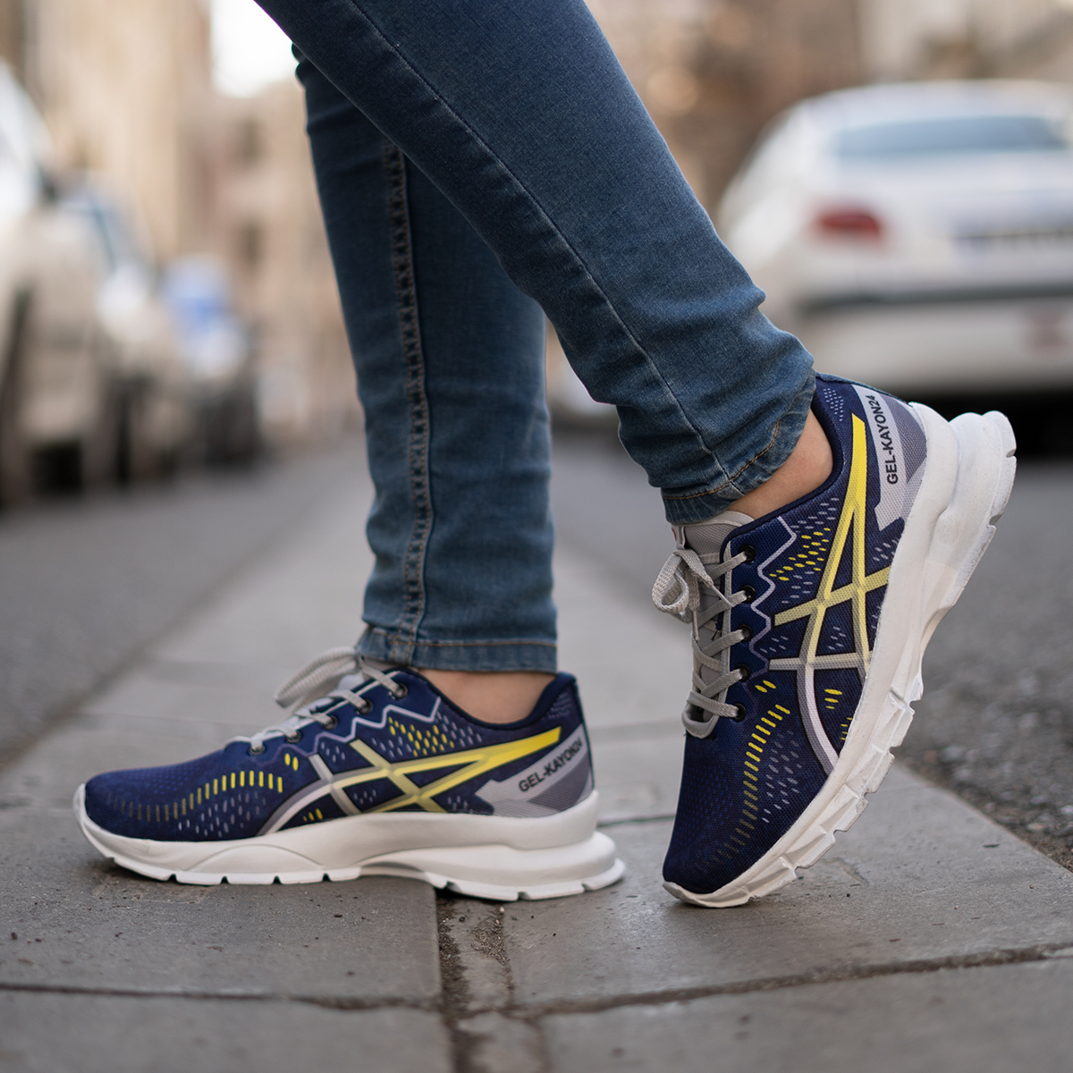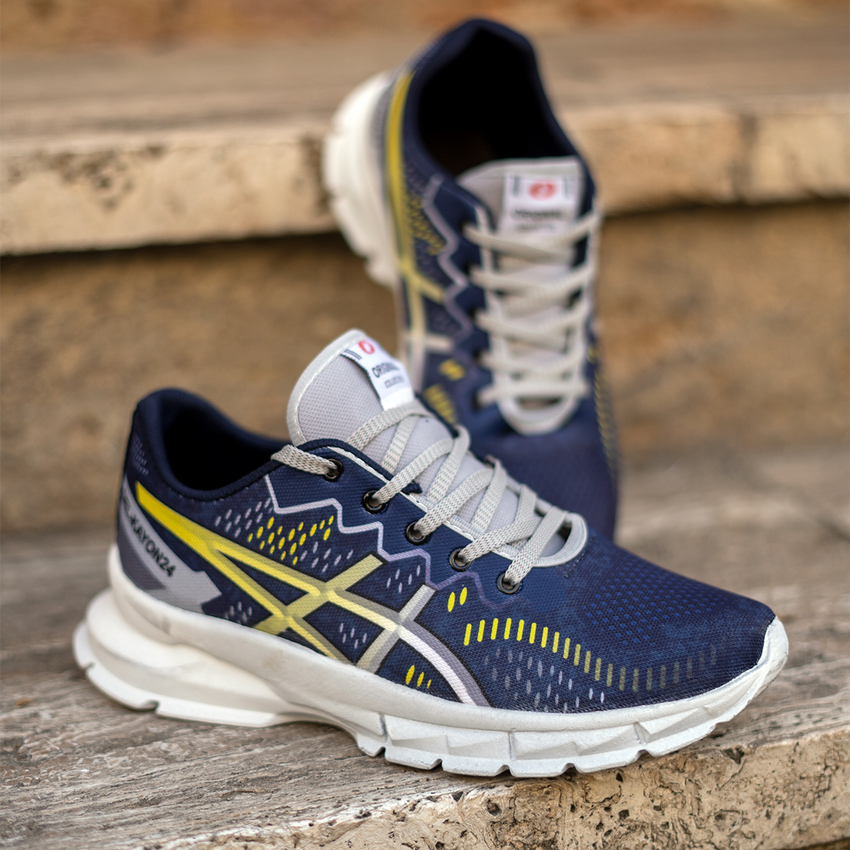 کفش مردانه اسیکس سرمه ای زرد مدل dahak