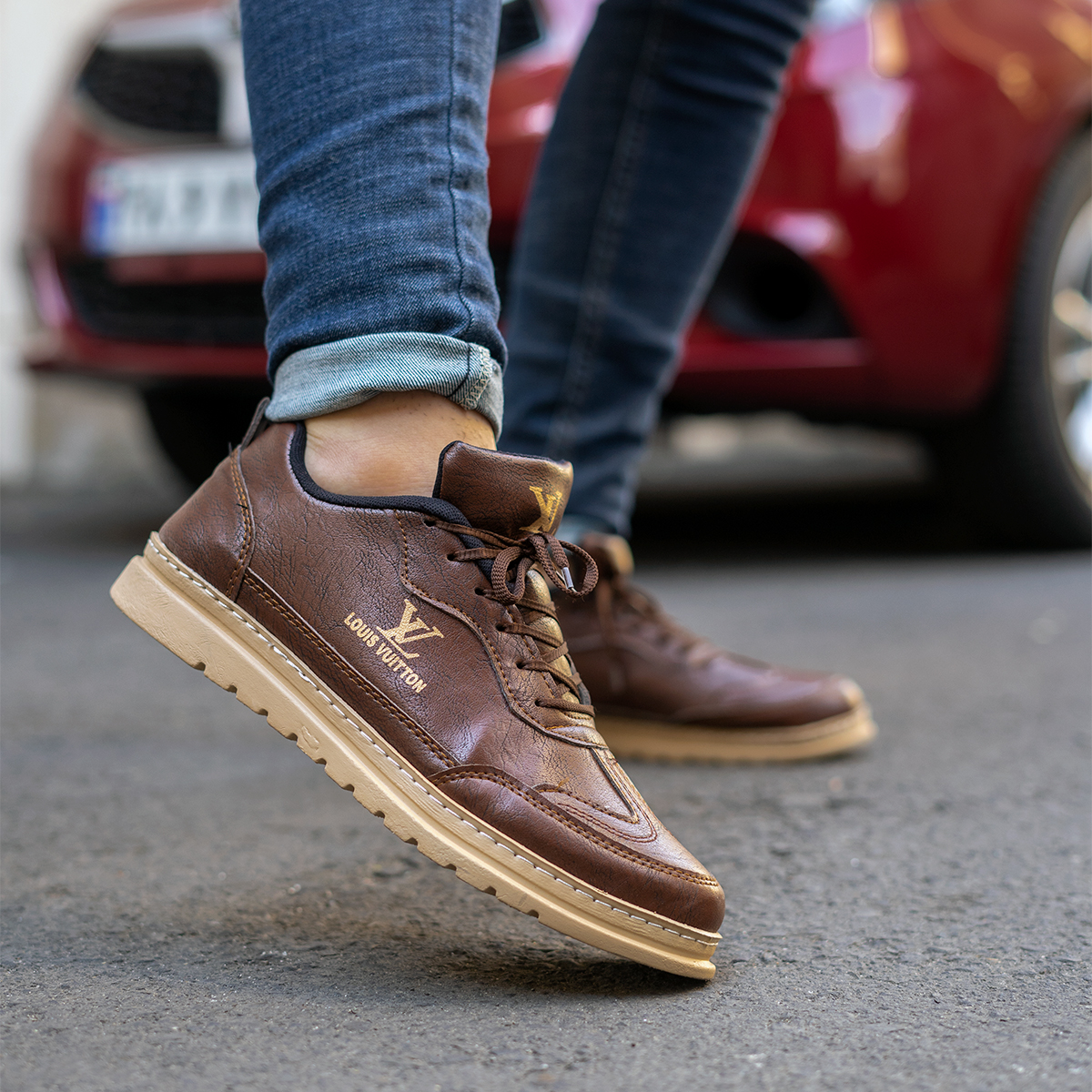 کفش تخت Lv مردانه قهوه ای مدل LOUIS