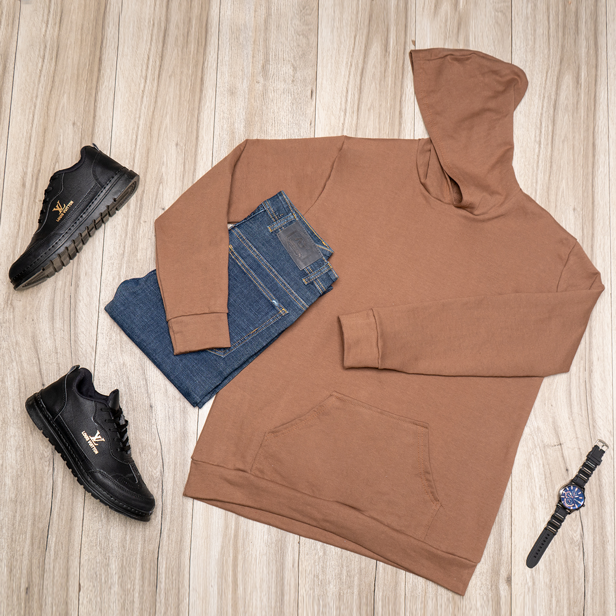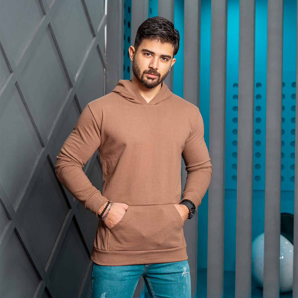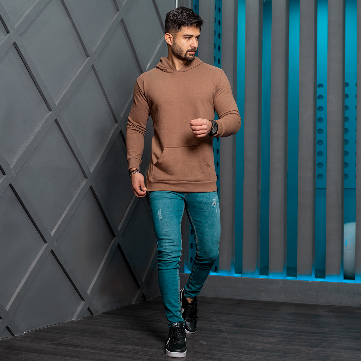 هودی مردانه قهوه ای مدل Ramtin