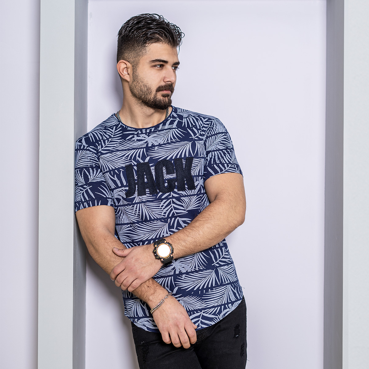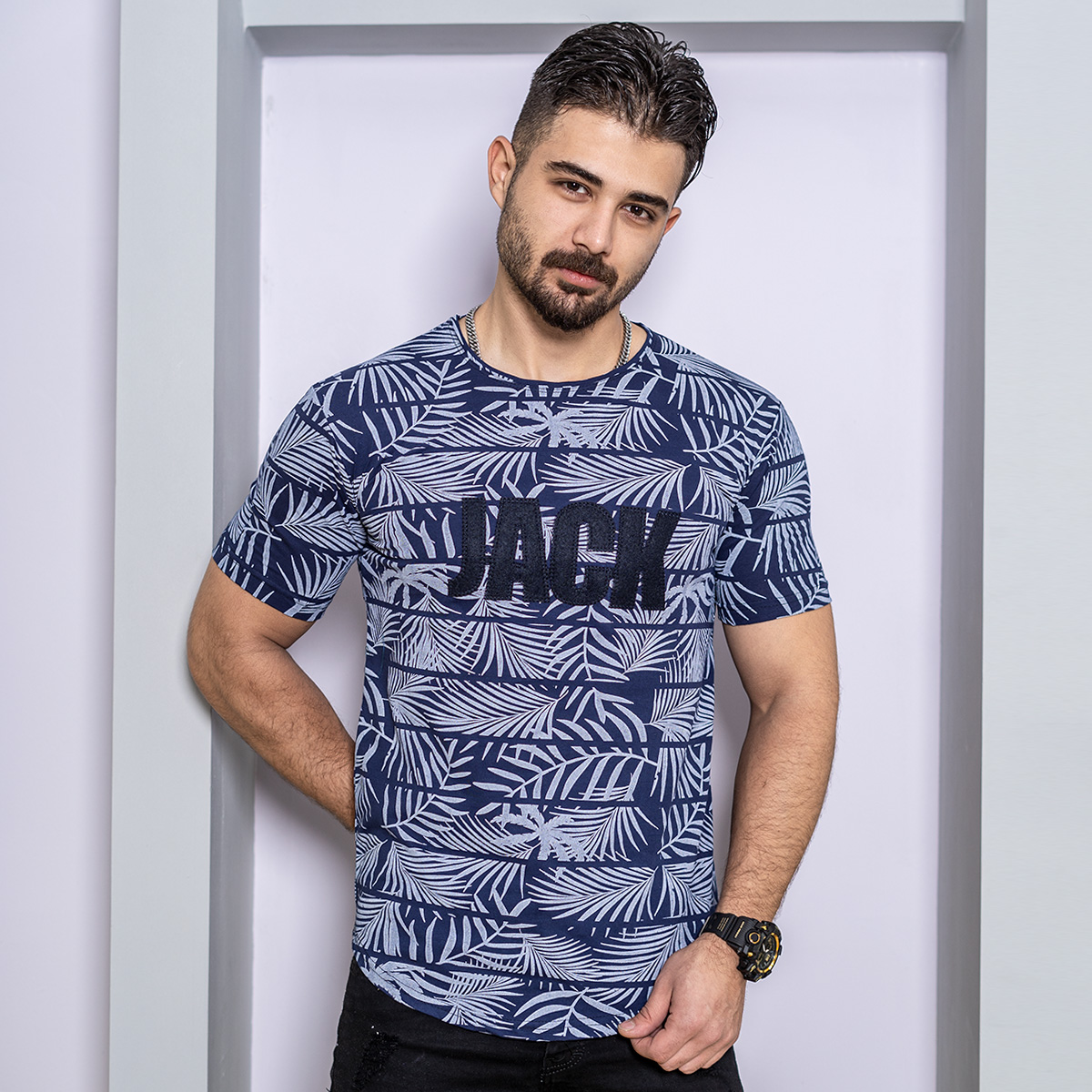 تیشرت مردانه سرمه ای مدل Jack