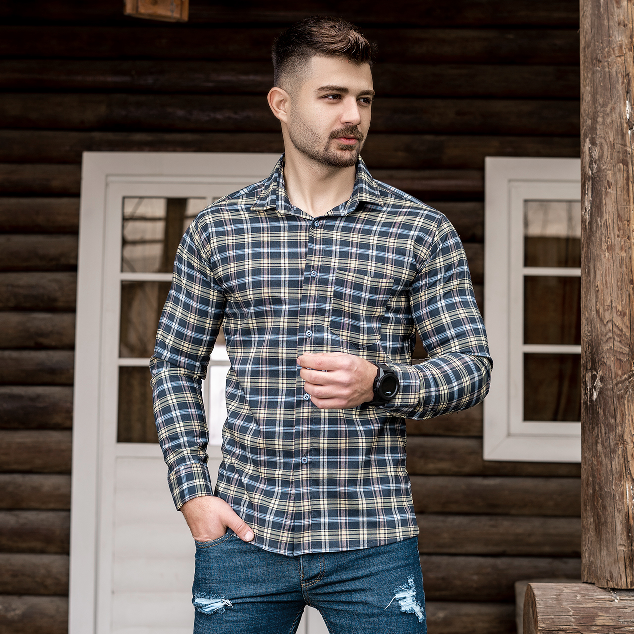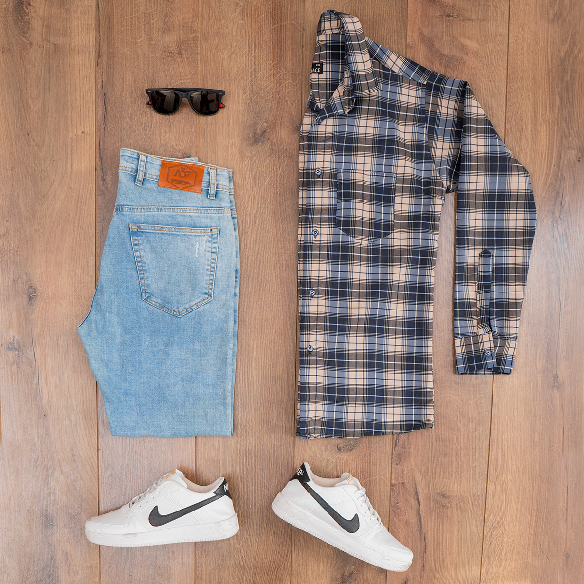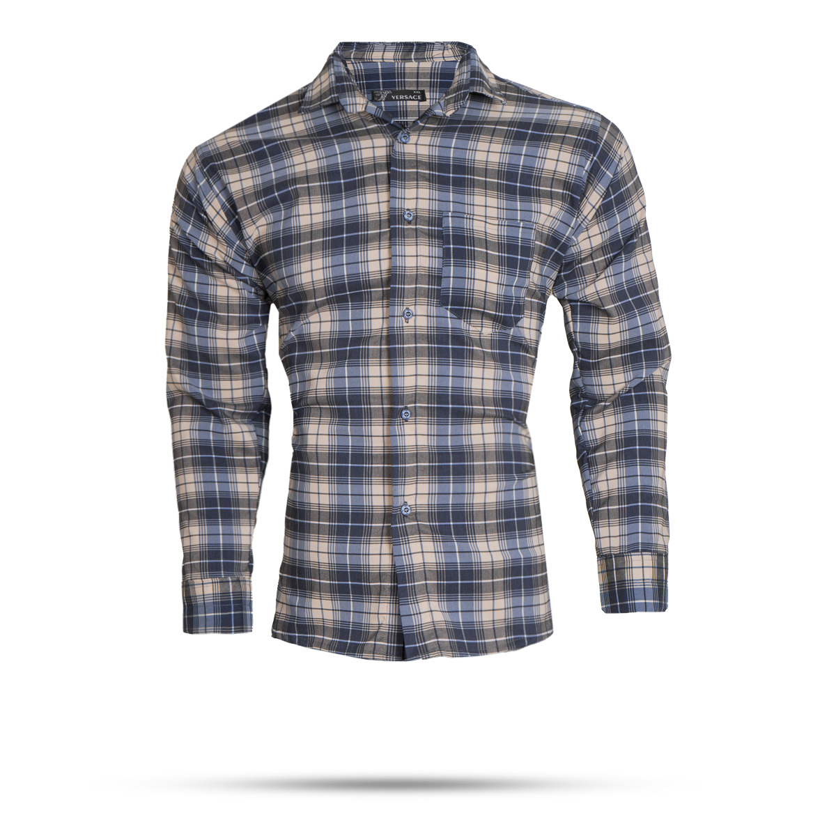 پیراهن چهارخانه کرم سرمه ای مردانه مدلDivan