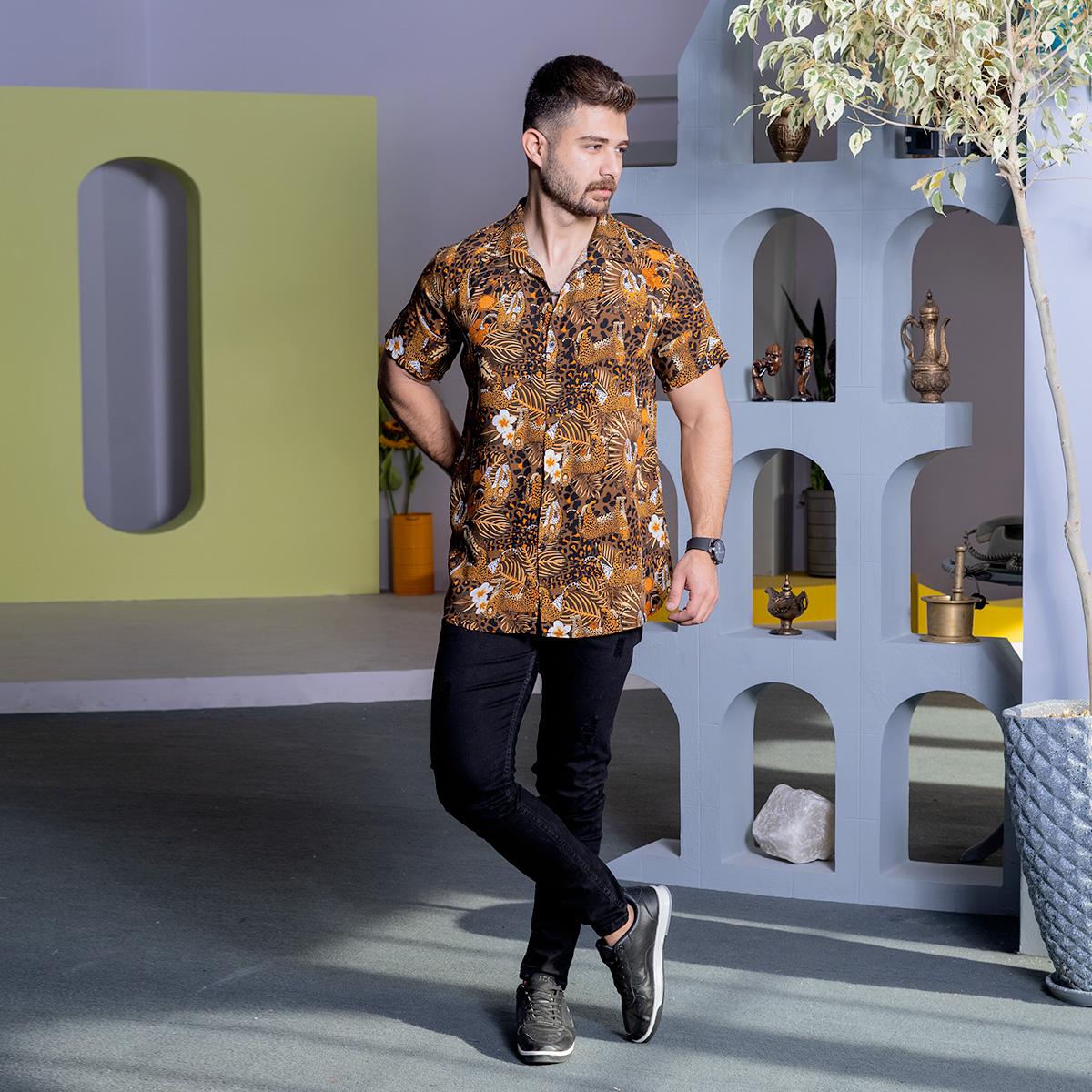 پیراهن هاوایی مردانه مدل Parmo