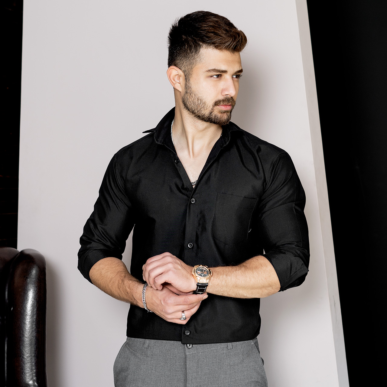 پیراهن مجلسی مردانه مشکی برای هر شرایطی، حتی مراسم عروسی، مناسب است، بنابراین اگر طرفدار پیراهن مشکی هستید، از این رنگ بدون هیچ ترسی استفاده کنید.
