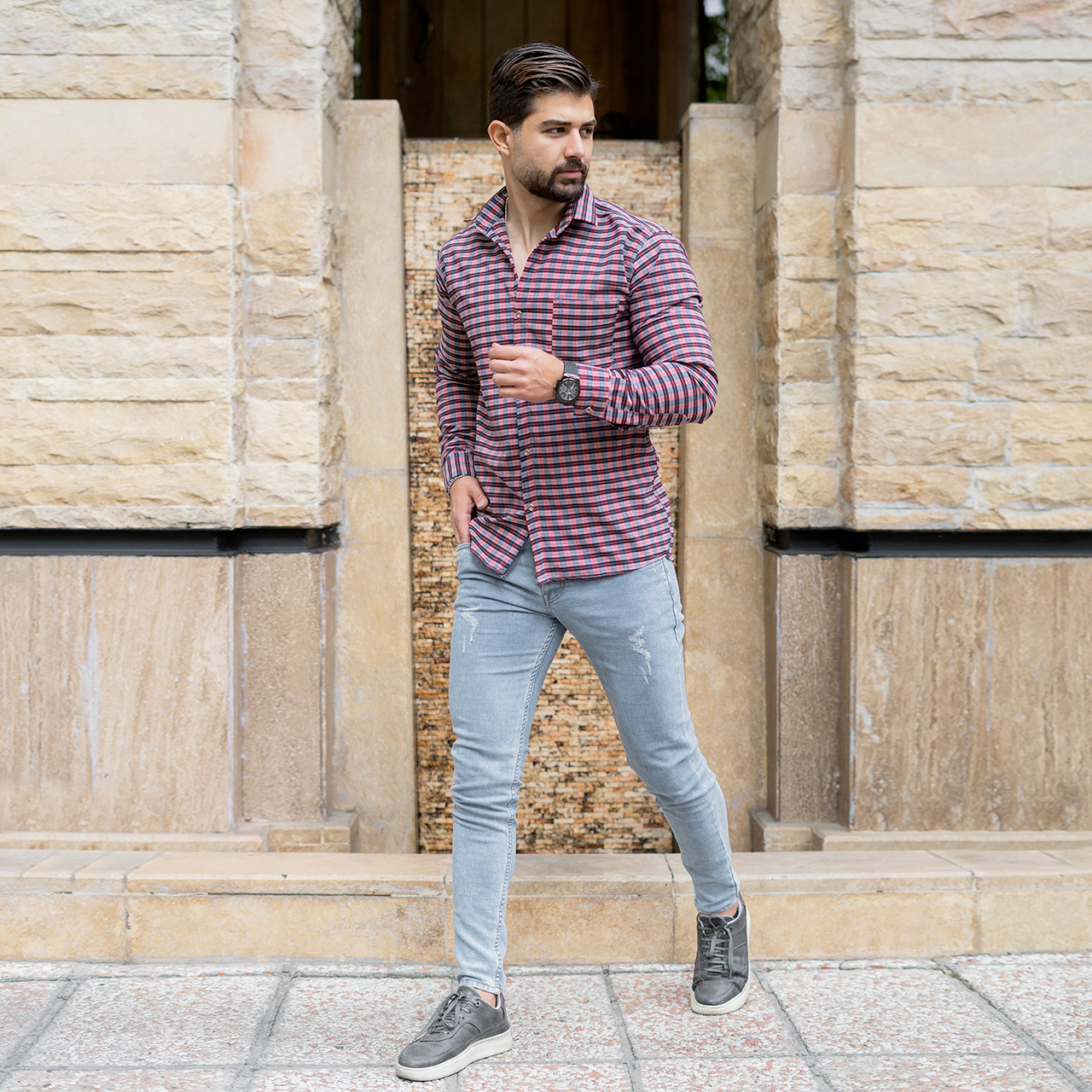 پیراهن مردانه(T) چهار خونه ریز قرمز مدل T78