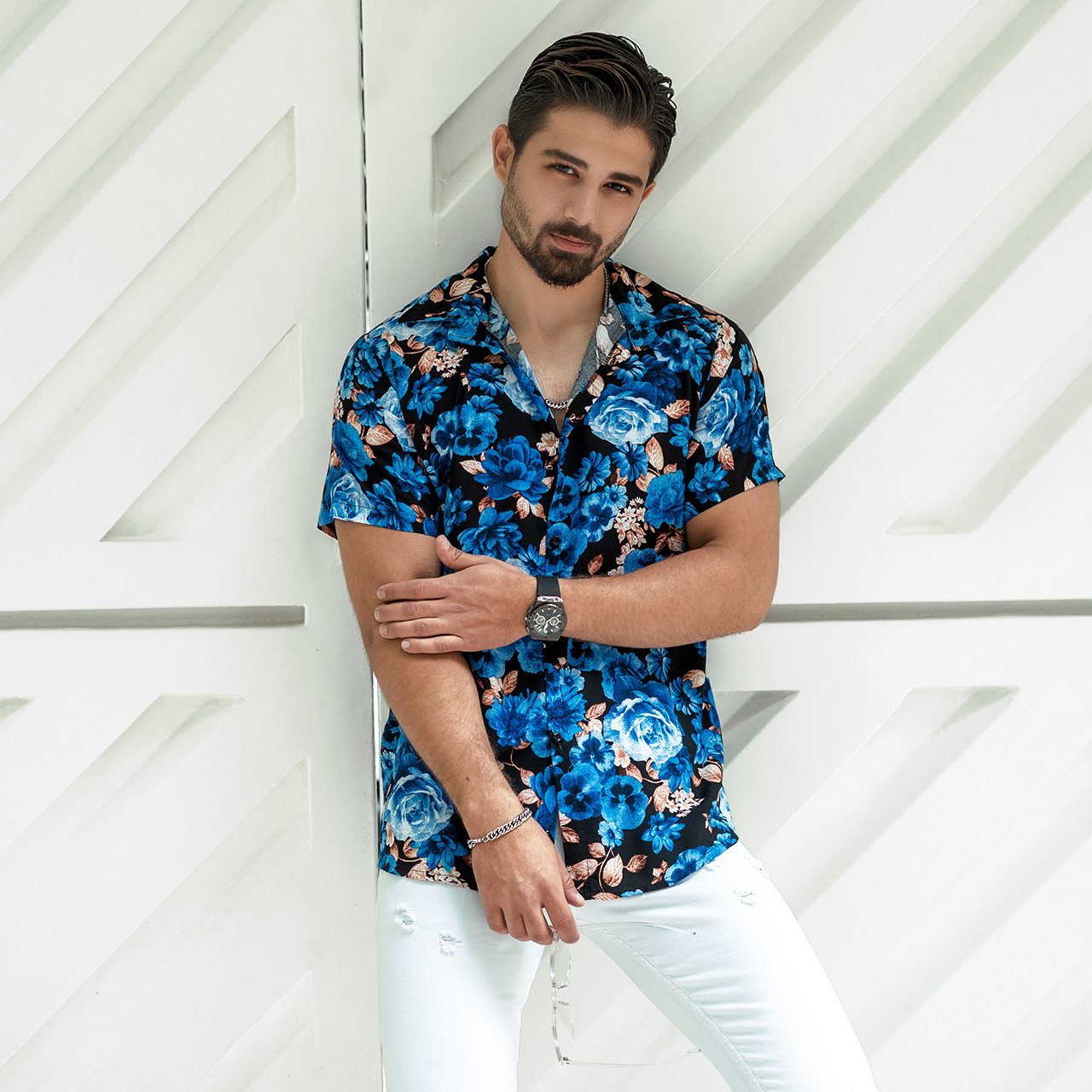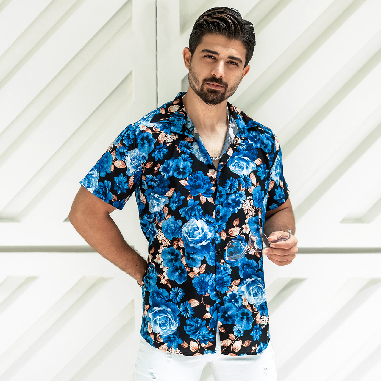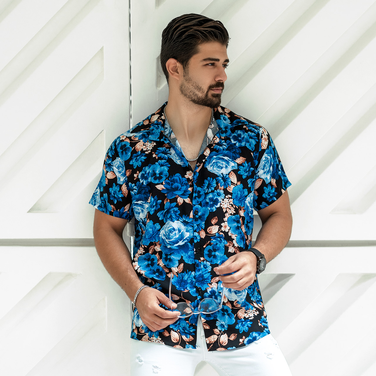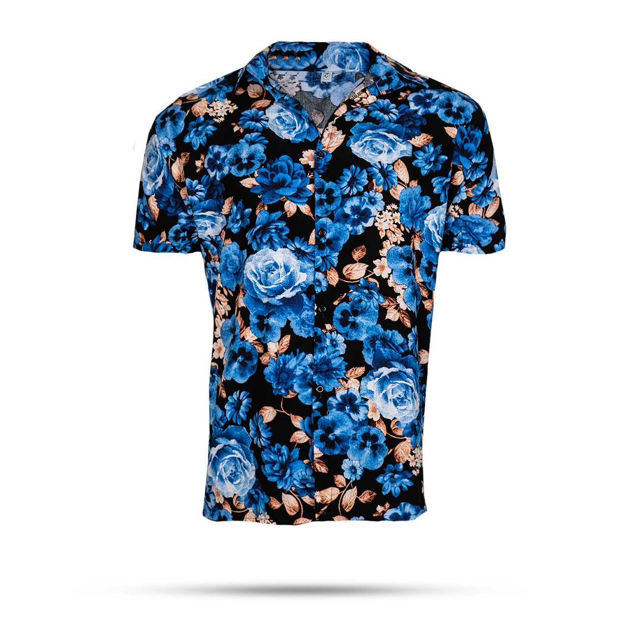 پیراهن هاوایی طرح گل آبی مردانه مدل P12