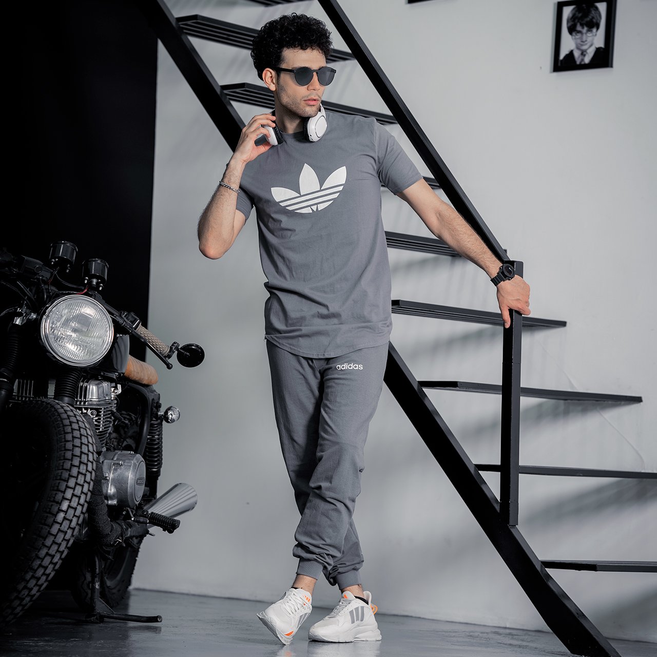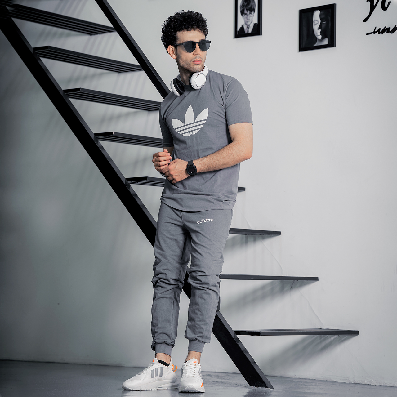 ست تیشرت شلوار مردانه طوسی آدیداس مدل DG110