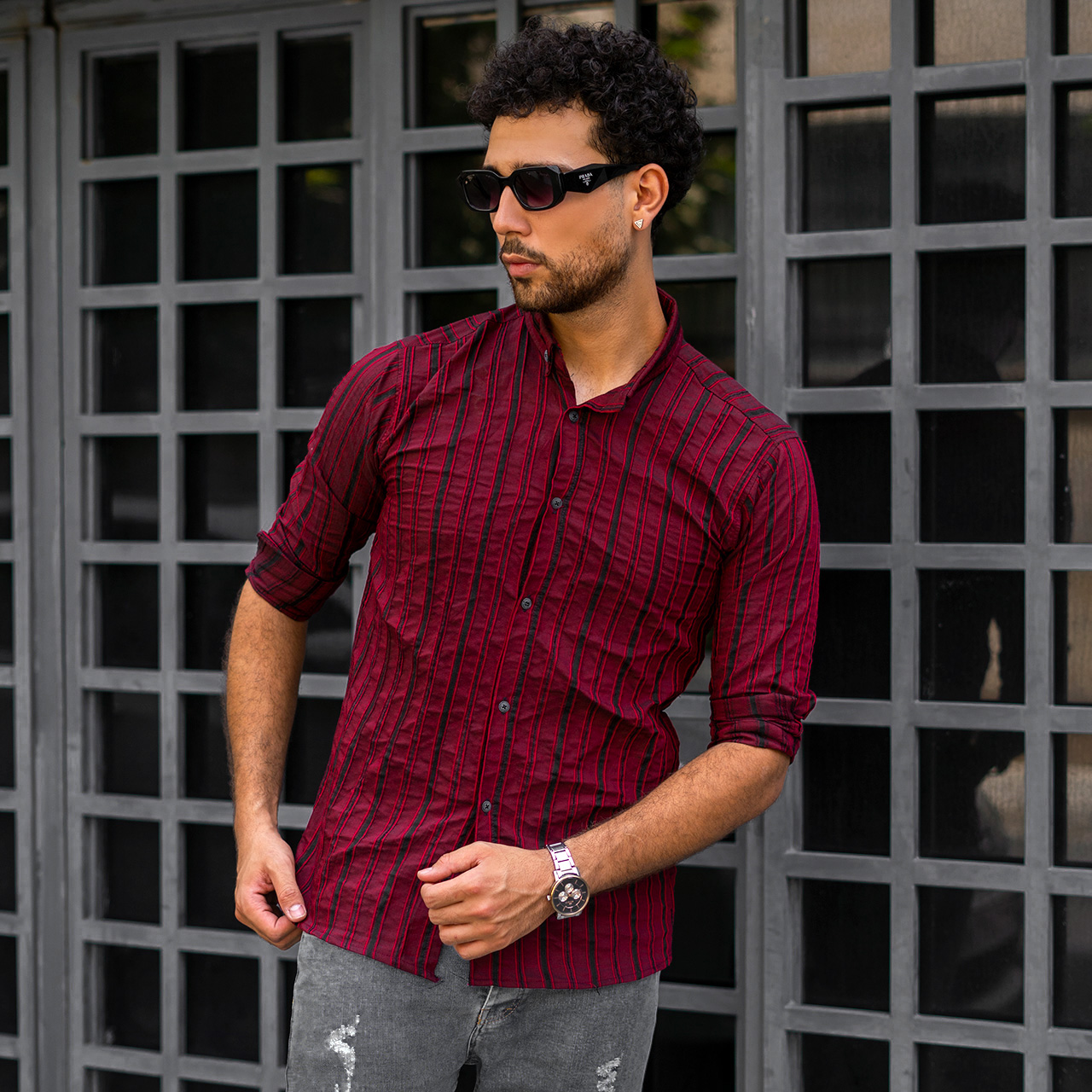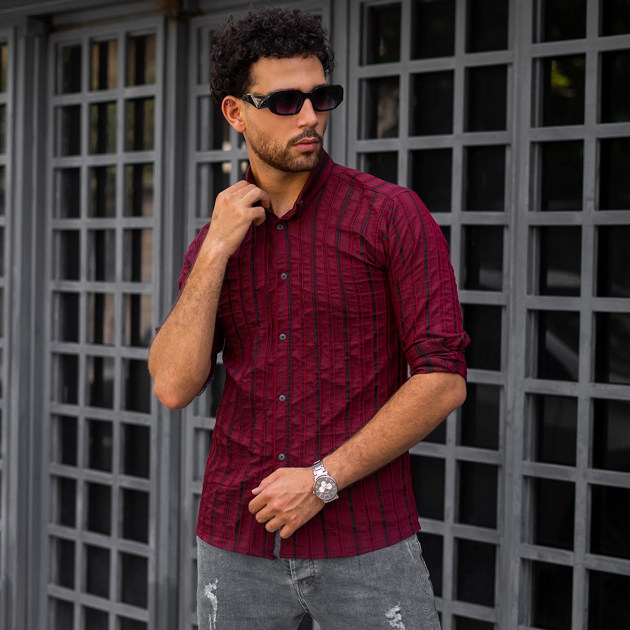 پیراهن راه راه قرمز مردانه مدل Mavin