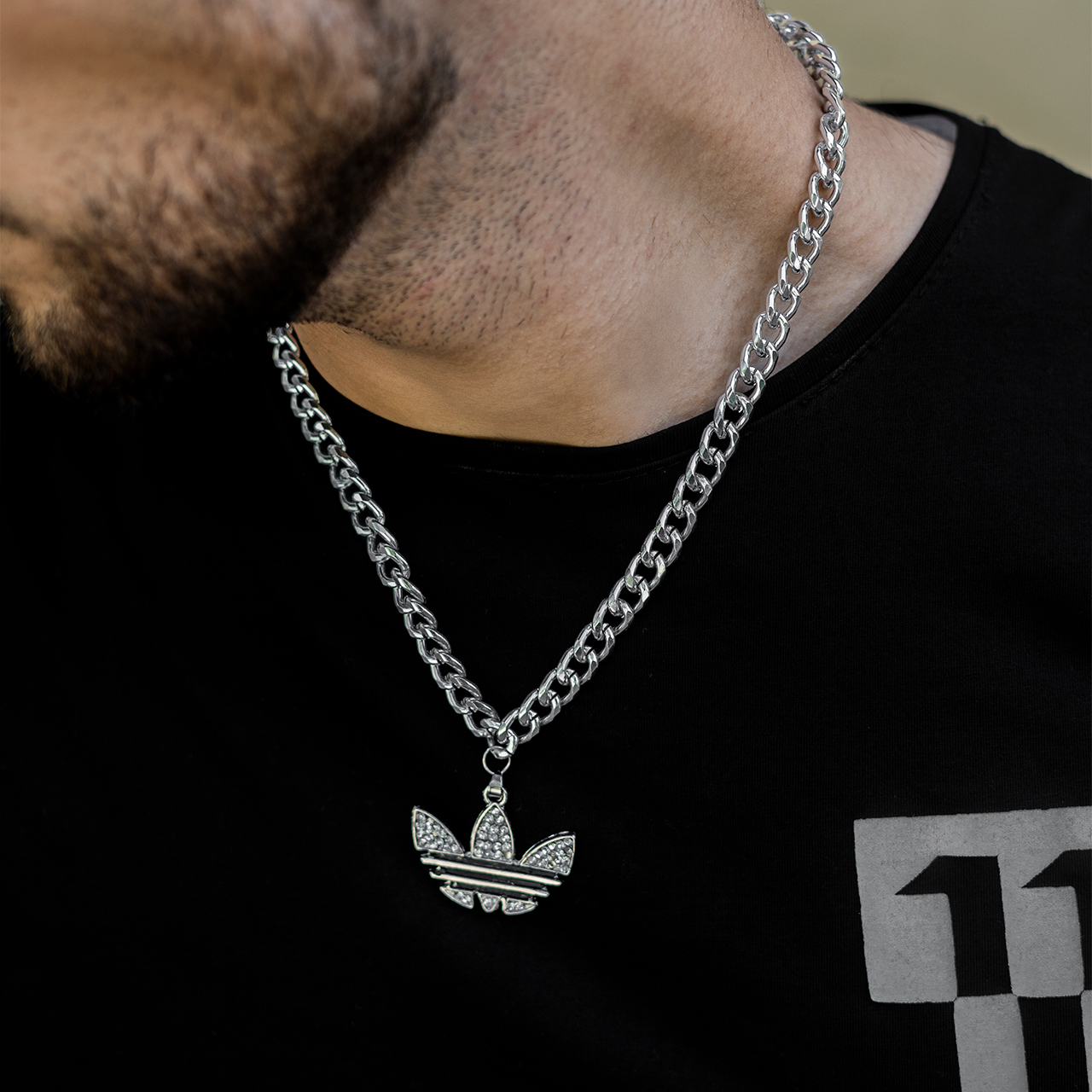 گردنبند آویز دار آدیداس نقره ای مردانه مدل A40
