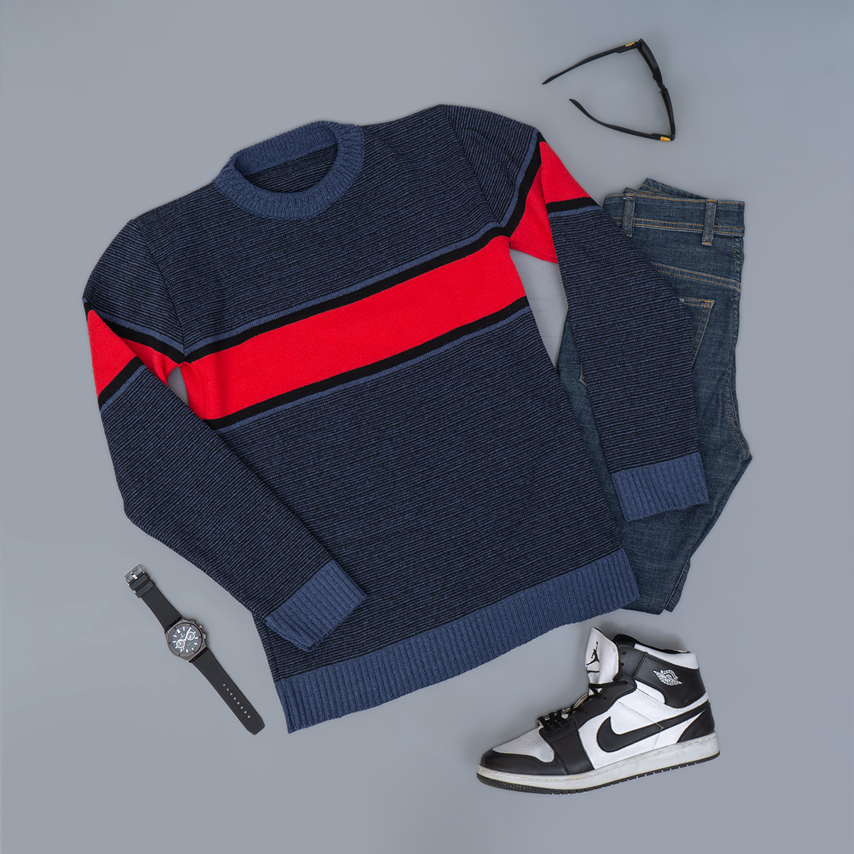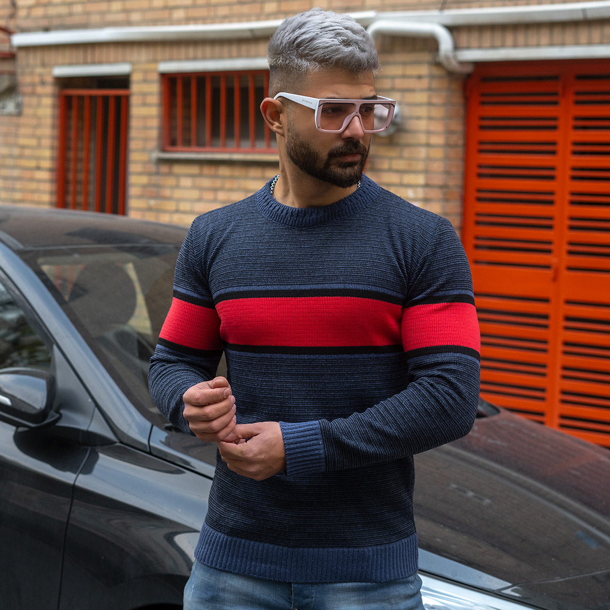پلیور مردانه قرمز- سرمه ای مدل Madis