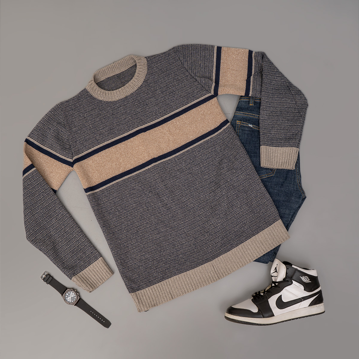 پلیور مردانه کرم- طوسی مدل Madis