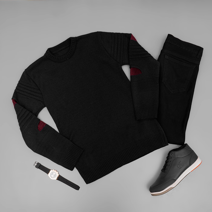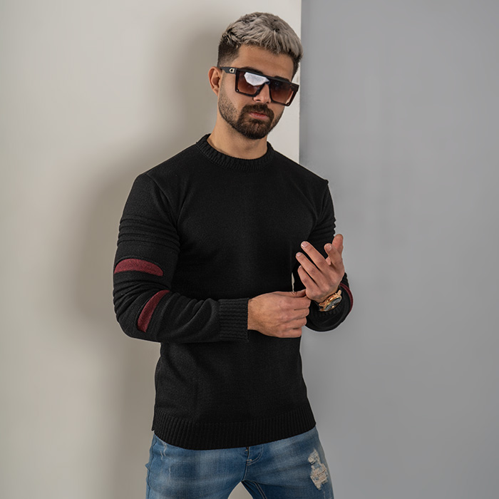 پلیور بافت مردانه مشکی مدل solan زاپ زرشکی