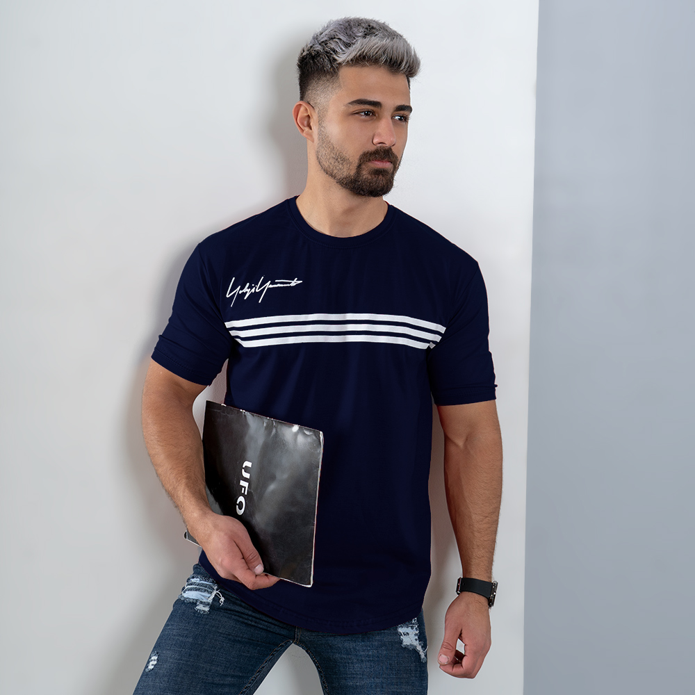 تیشرت مردانه سه خط سرمه ای مدل DENVER