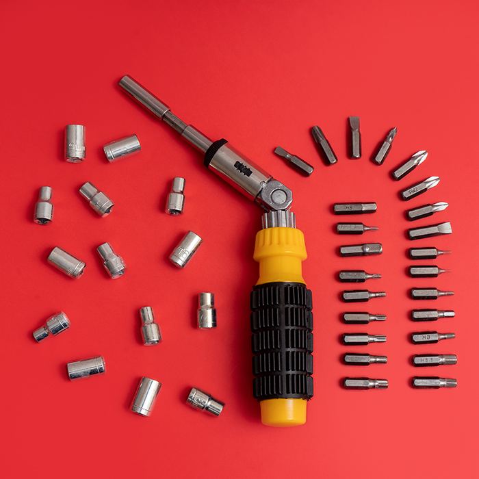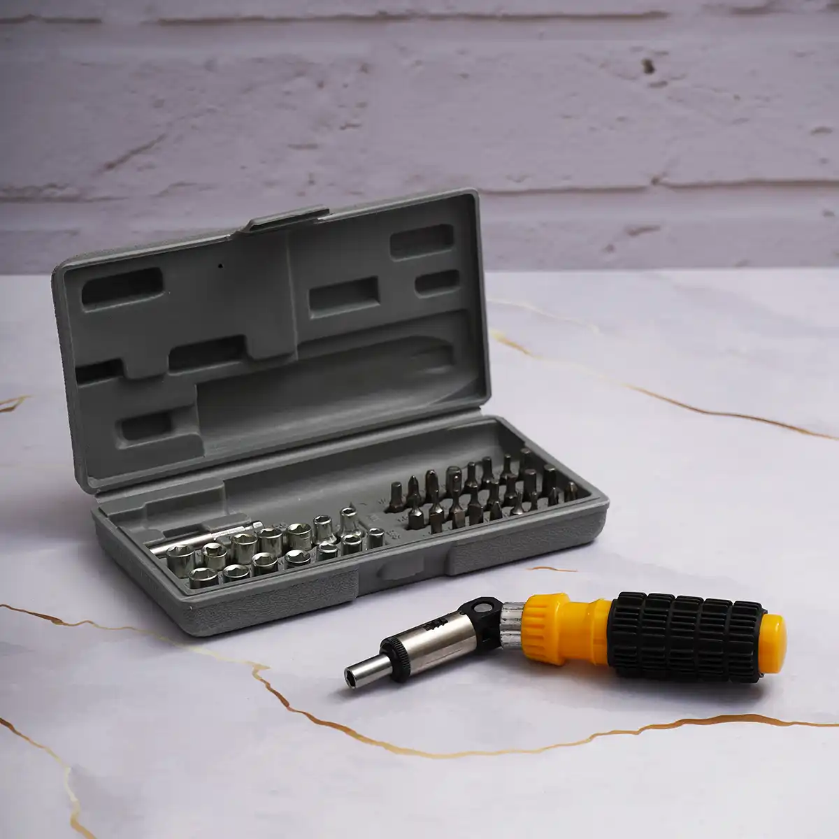 دارای 7 عدد بکس درایو 1.4 میلیمتر به سایزهای 4,5,5.5.6,7,8,9\r\nدارای 7 عدد بکس درایو 1.4 اینچ به سایزهای 5.32, 3.16, 7.32, 1.4 , 9.23, 5.16, 11.23 \r\nدارای 7 عدد سری آلن ستاره ای به سایزهای T10,T15, T20, T25, T27, T30, T40\r\nدارای 8 عدد سری آلن به سایزهای 1.5, 2 , 2.5 , 3,4,5,5.5,6\r\nدارای 3 عدد سری دو سو \r\nدارای 3 عدد سری چهارسو \r\nدارای 3 عدد سری