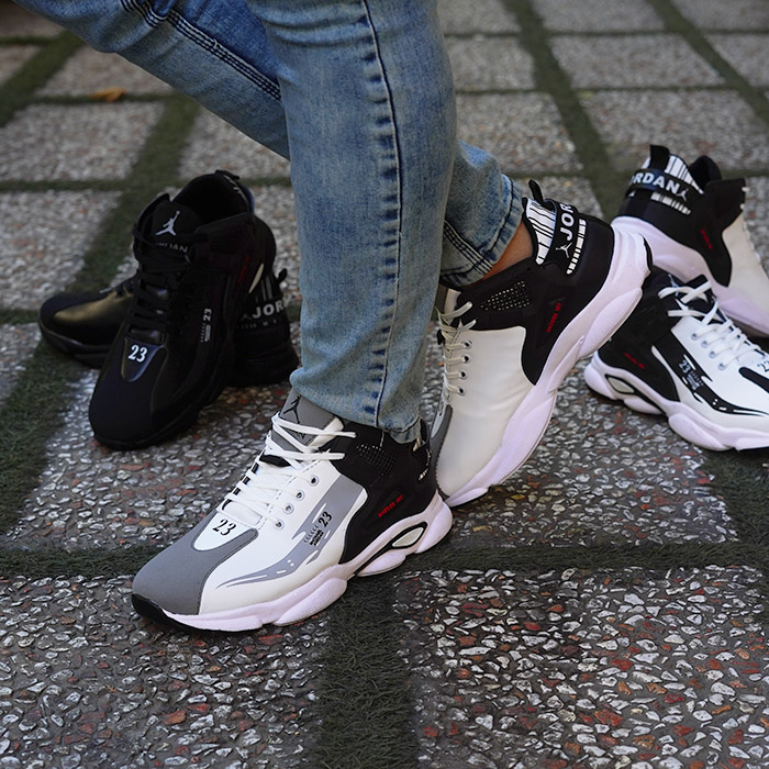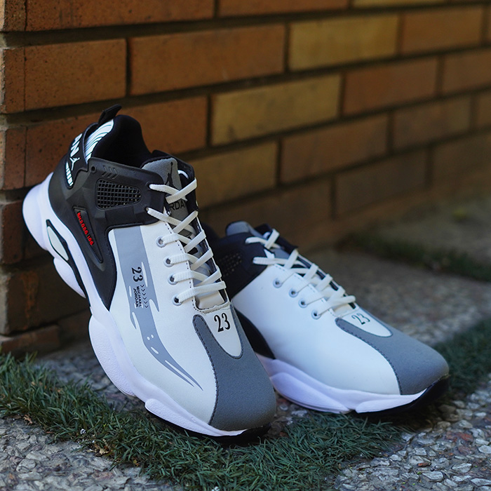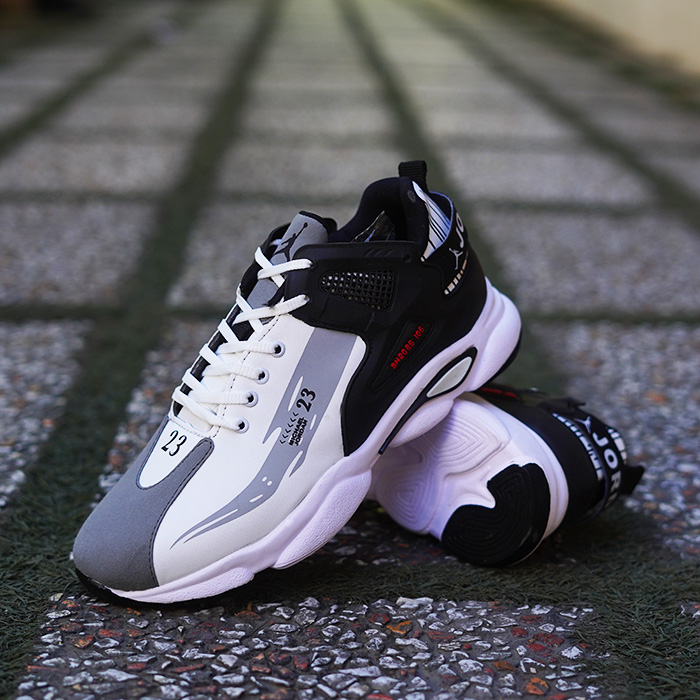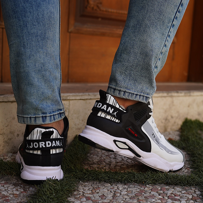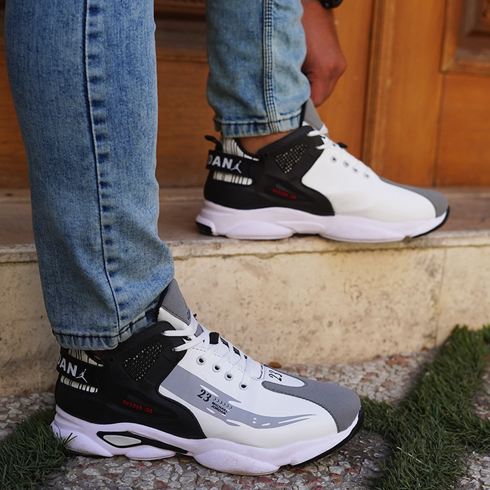 کفش ورزشی مردانه jordan سفید طوسی مدل 23