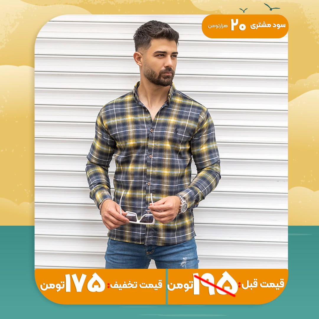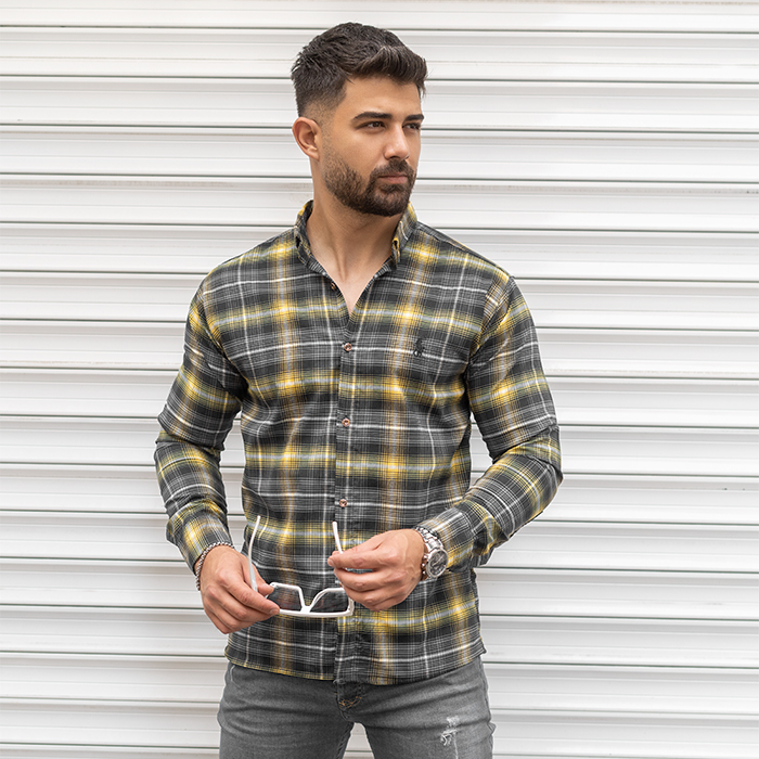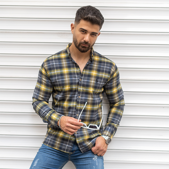 پیراهن مردانه زرد سرمه ای مدل Farzad