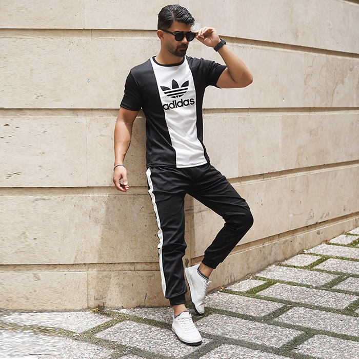 ست تیشرت شلوار مردانه مشکی سفید مدل ilia
