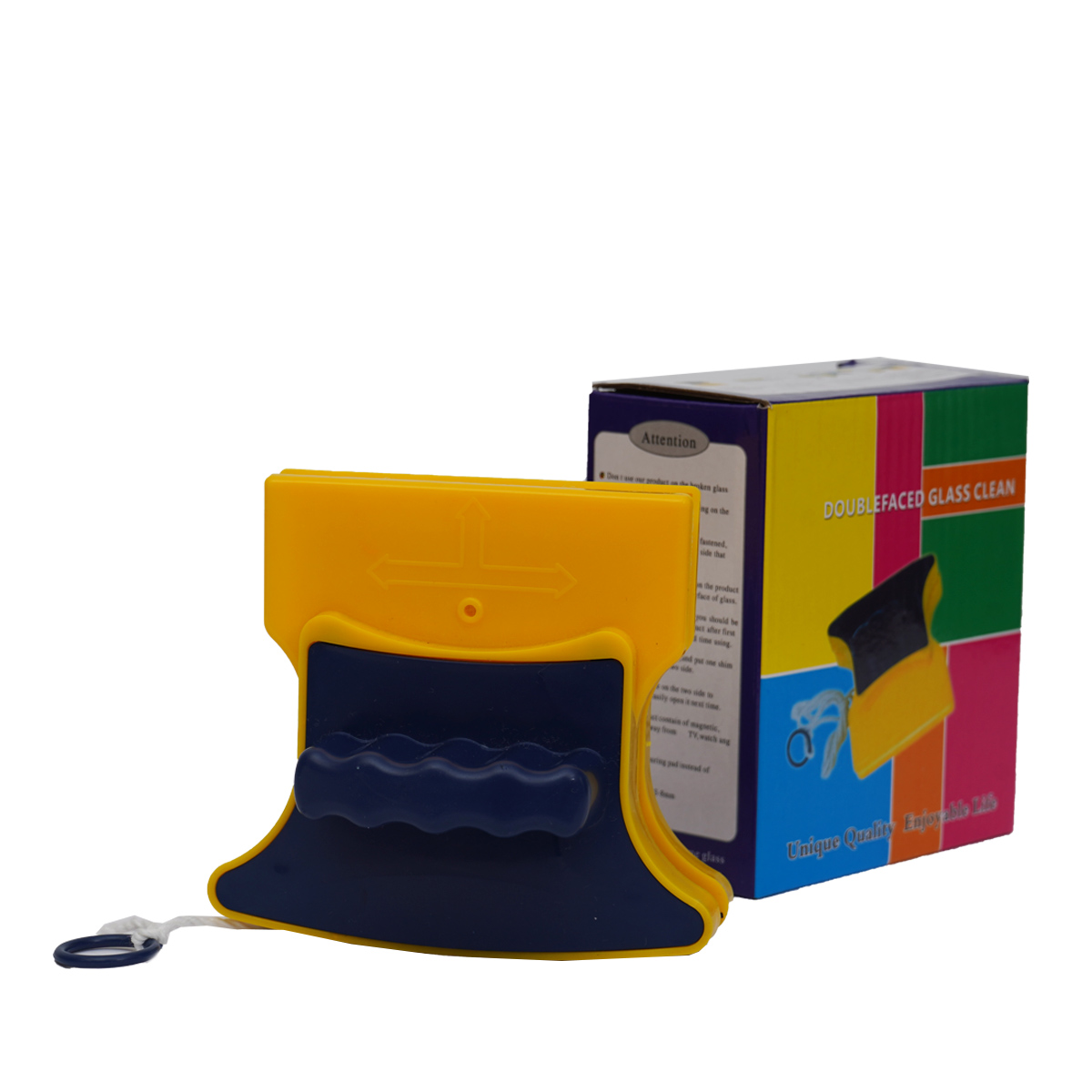 این شیشه پاک کن دارای دو قسمت اهنربایی می باشد که با گرفتن یکی از آنها در یک طرف شیشه قسمت دیگر هم در آن طرف شیشه بوسیله آهنربا به سمت قسمت اول جذب شده و در نتیجه بر روی شیشه میماند و با حرکت دادن قسمت اول شیشه پاکن قسمت دوم نیز در ان طرف شیشه به حرکت در امده و همزمان هر دو طرف شیشه پاک و تمیز می شود!