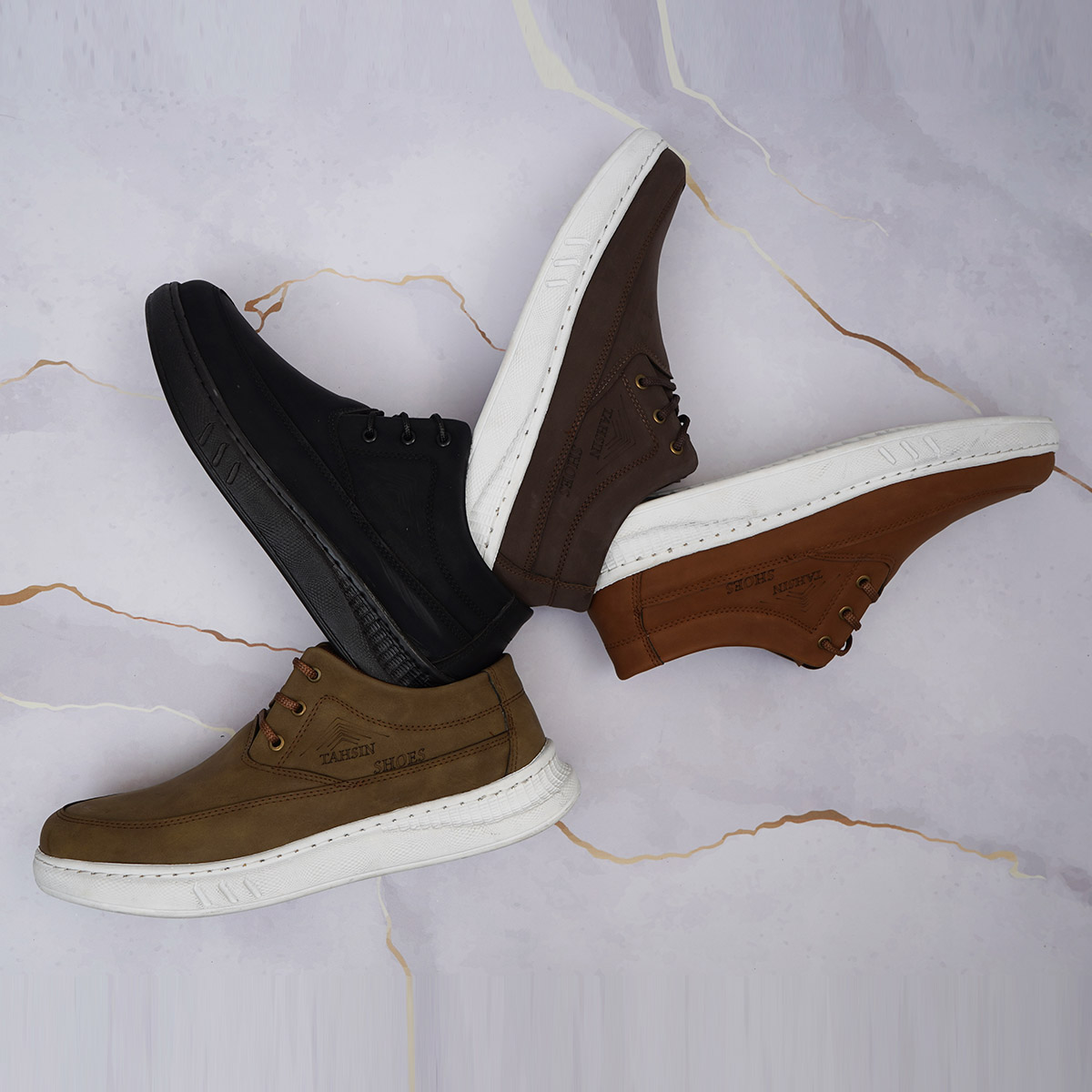 کفش مردانه عسلی زیره سفید مدل Tahsin