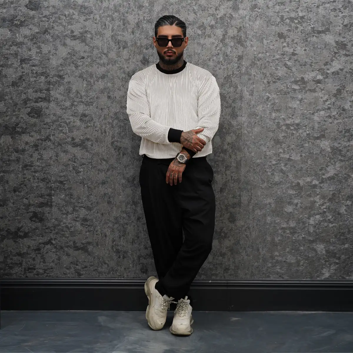 تیشرت آستین بلند سفید مردانه مدل Behrouz