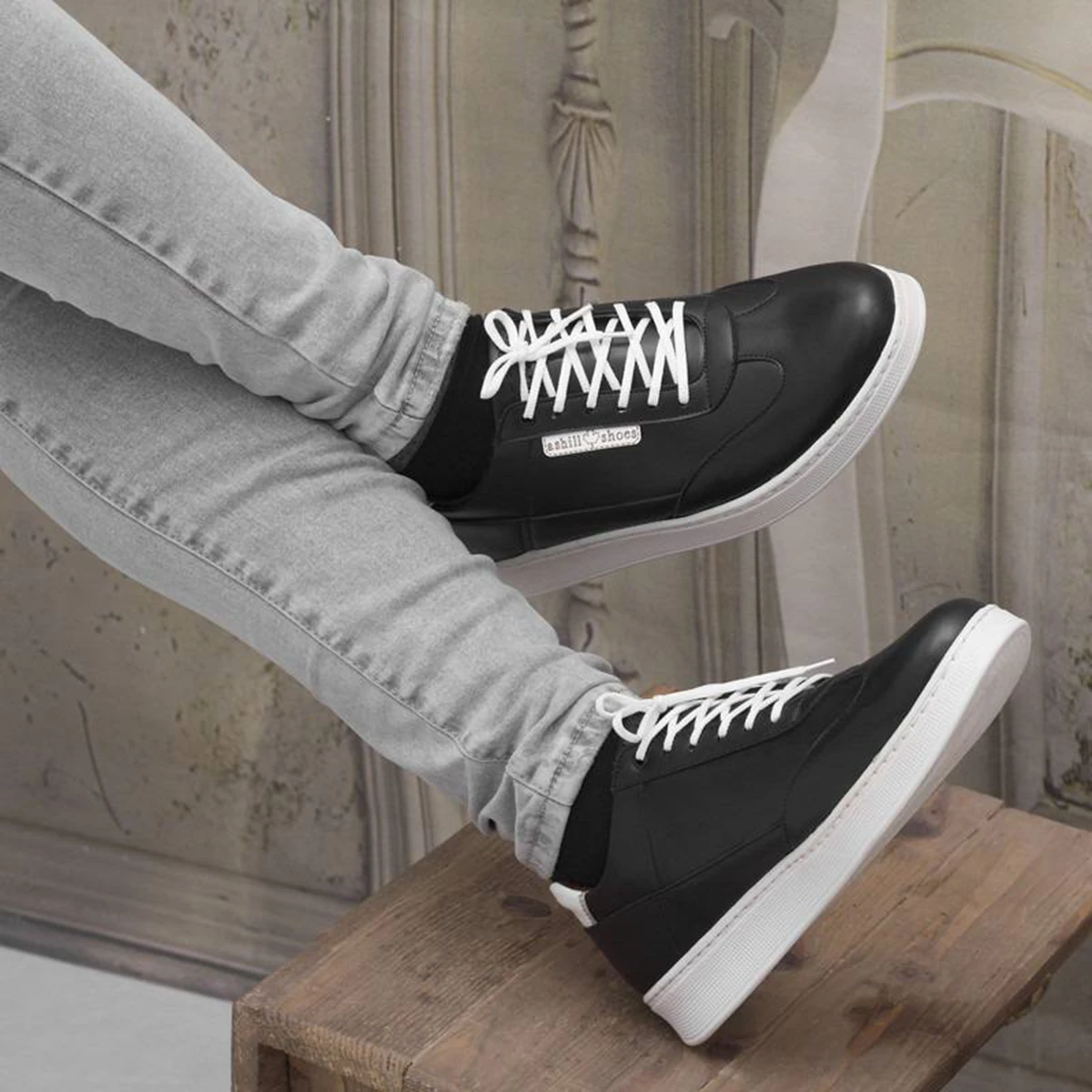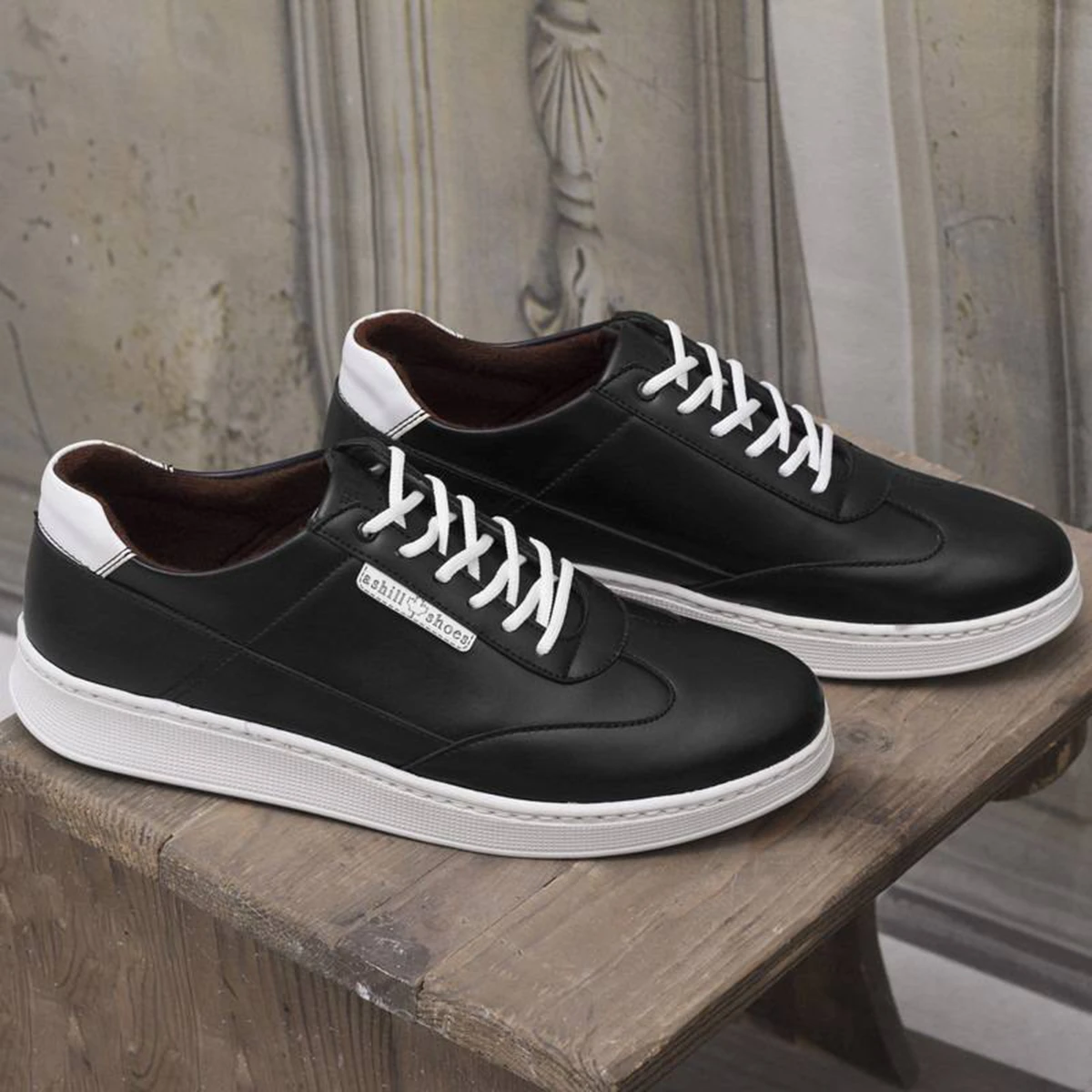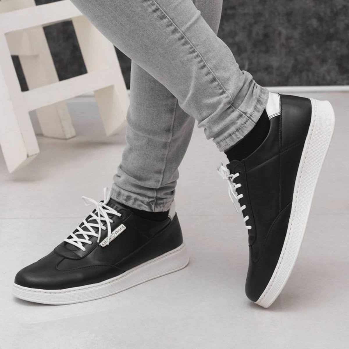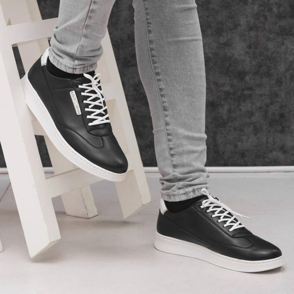 کفش تخت مردانه مشکی زیره سفید مدل Farhad