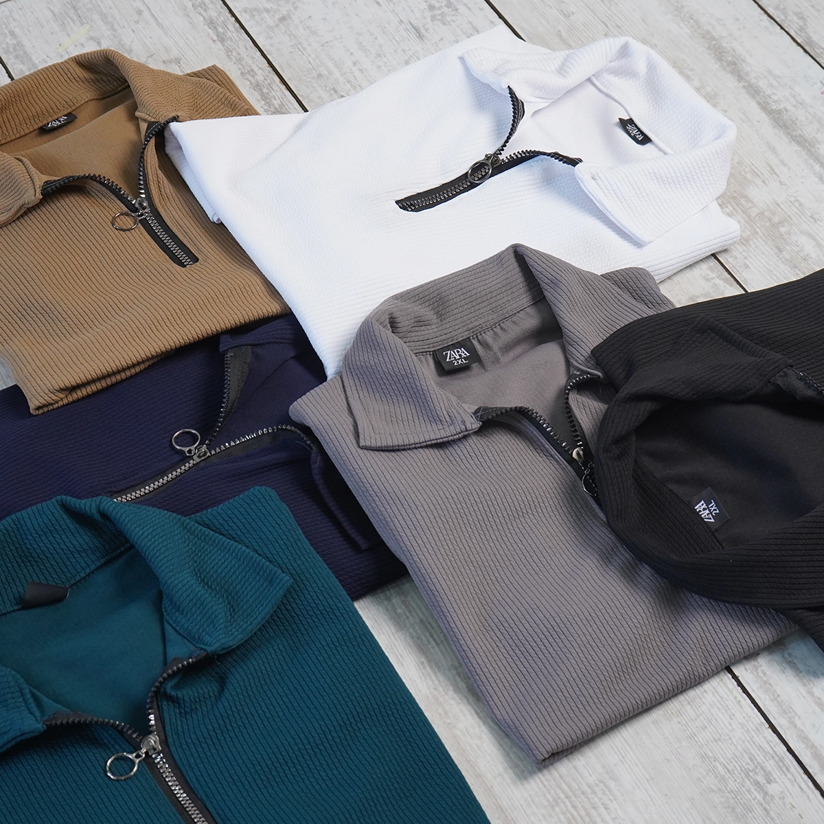 تیشرت مردانه یقه زیپ دار طوسی مدل Arban