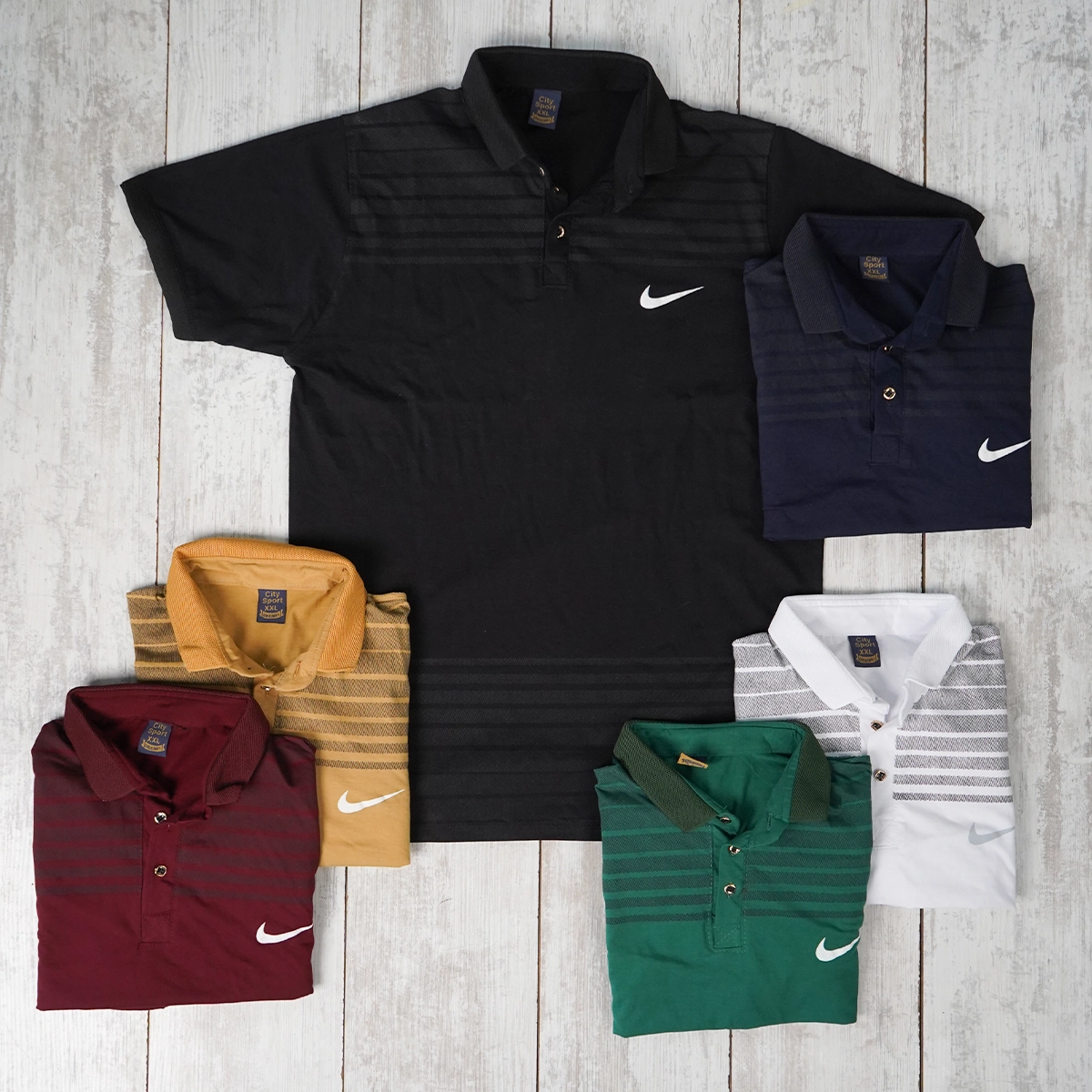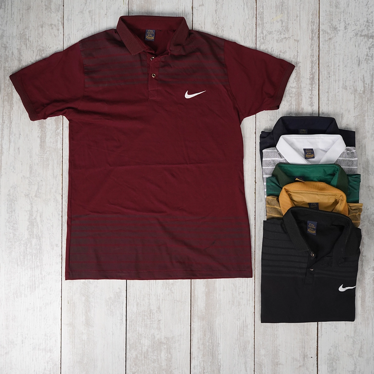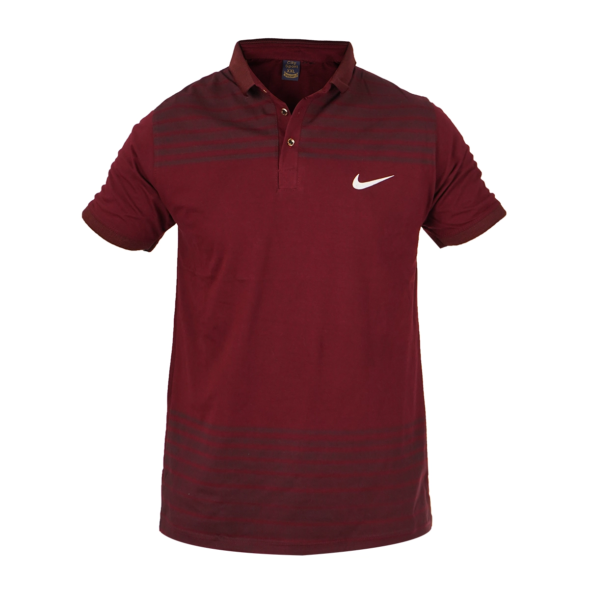 تیشرت یقه دار راه راه زرشکی مدل Farhan