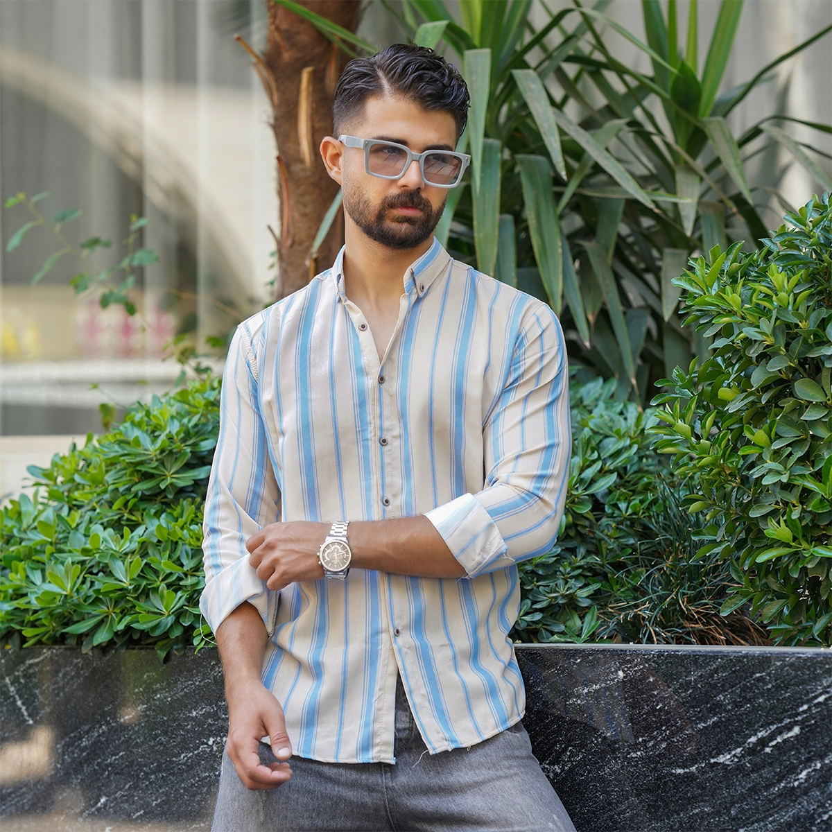 پیراهن راه راه زرد آبی مردانه مدل Ramin