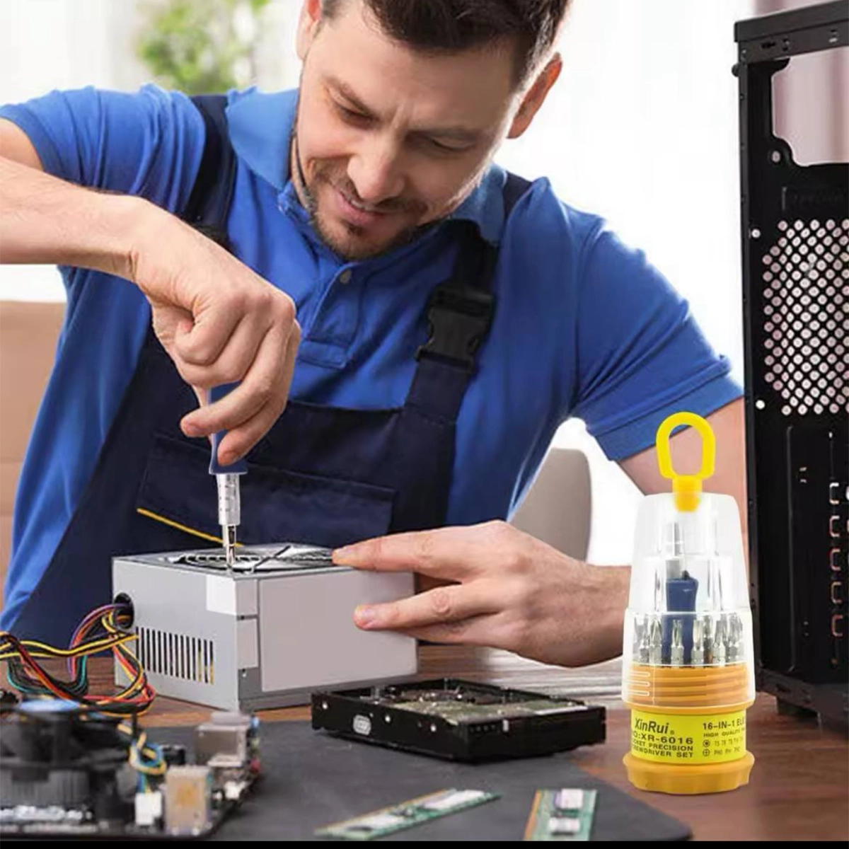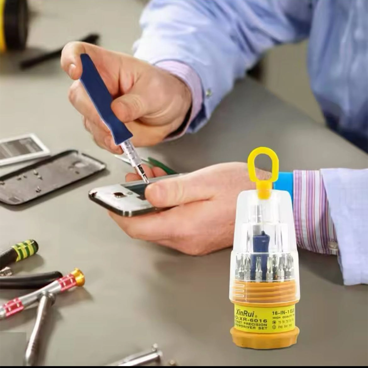 پیچ گوشتی ساعتی 16سر مدل AJ-6016 ابزاری بسیار کاربردی برای انجام تعمیرات و نگهداری فوری و در اسرع وقت می باشد که نیاز اولیه کاربران را به خوبی برطرف می نماید. این پیچ گوشتی دارای 16 سری برای پیچ های دوسو، چهارسو و آلن در سایز های مختلف است.