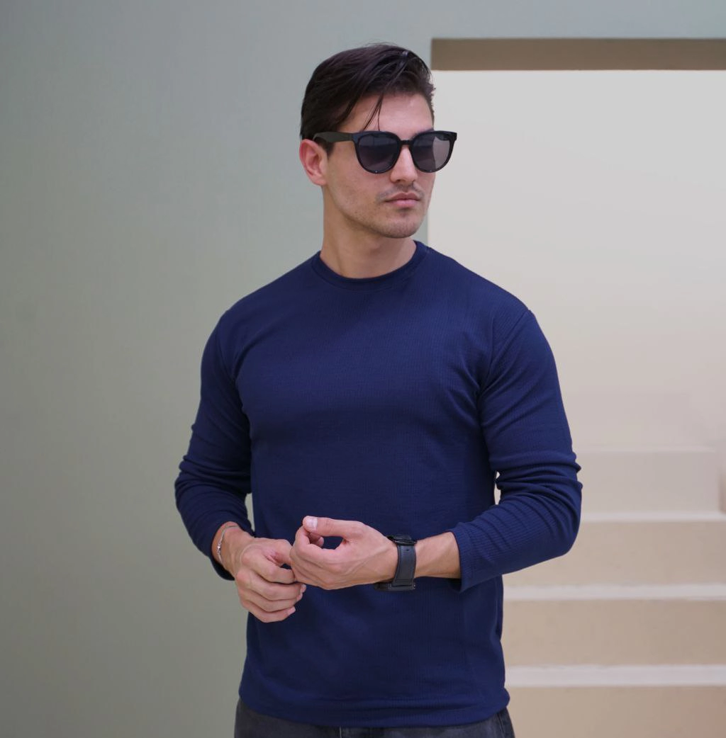 بلوز مردانه آستین بلند سرمه ای مدل Atra