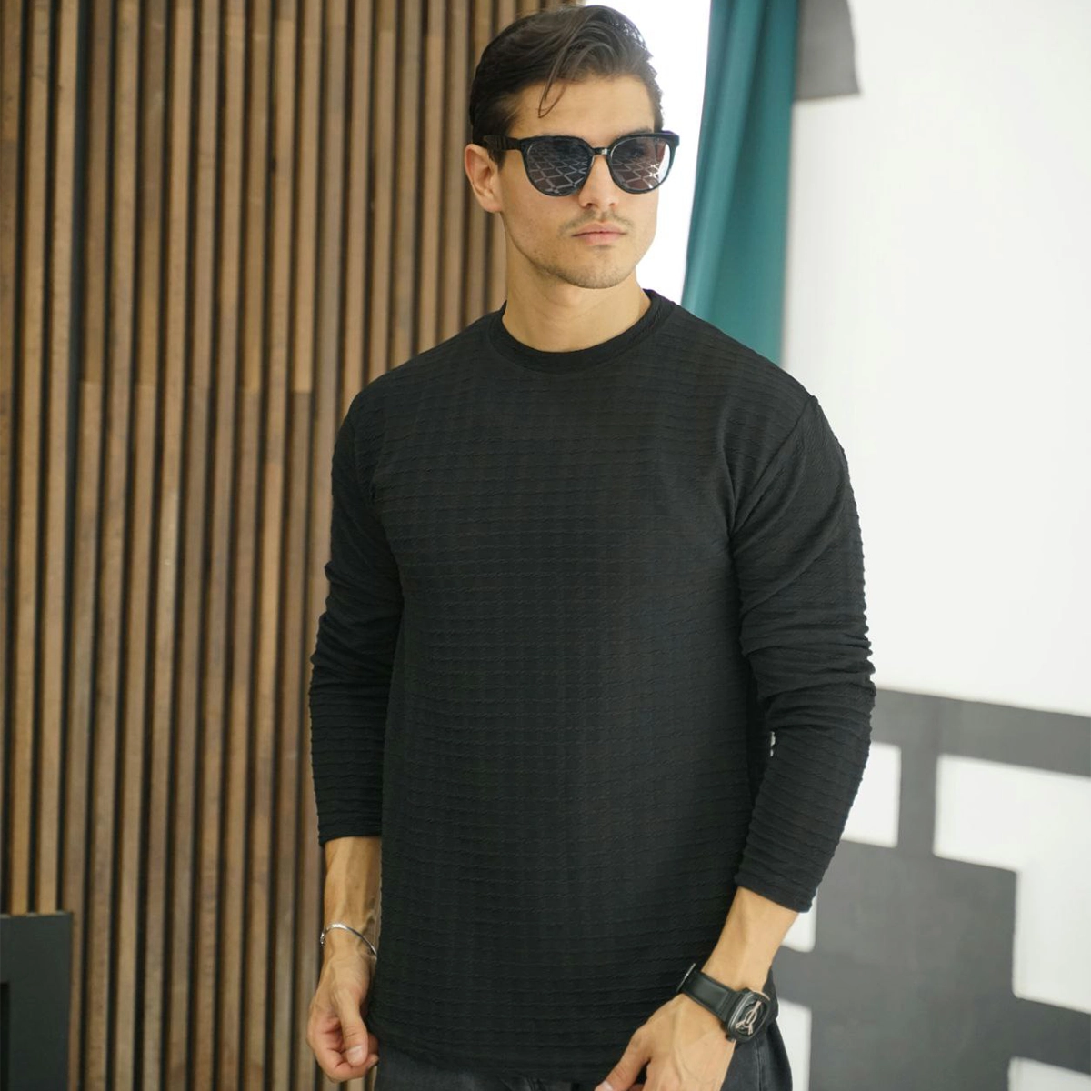 تیشرت مراکشی آستین بلند خطی مشکی مدل Borzo