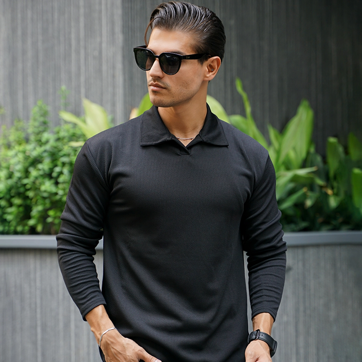 بلوز کبریتی یقه دار مردانه مشکی مدل Tami