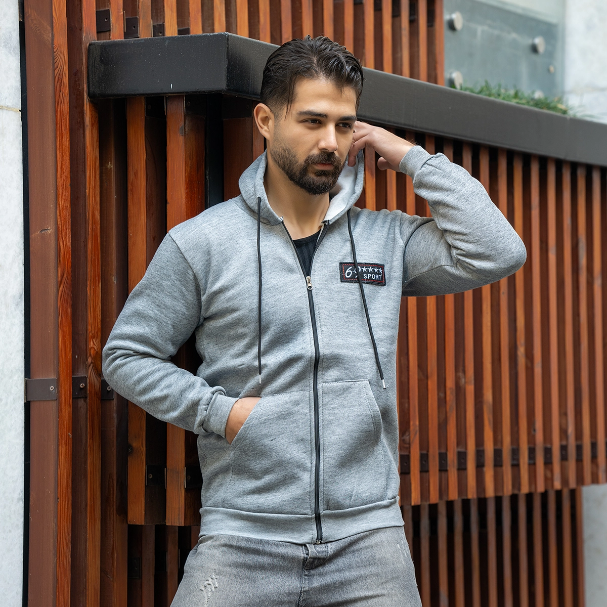 سوییشرت مردانه طوسی مدل Yazdan