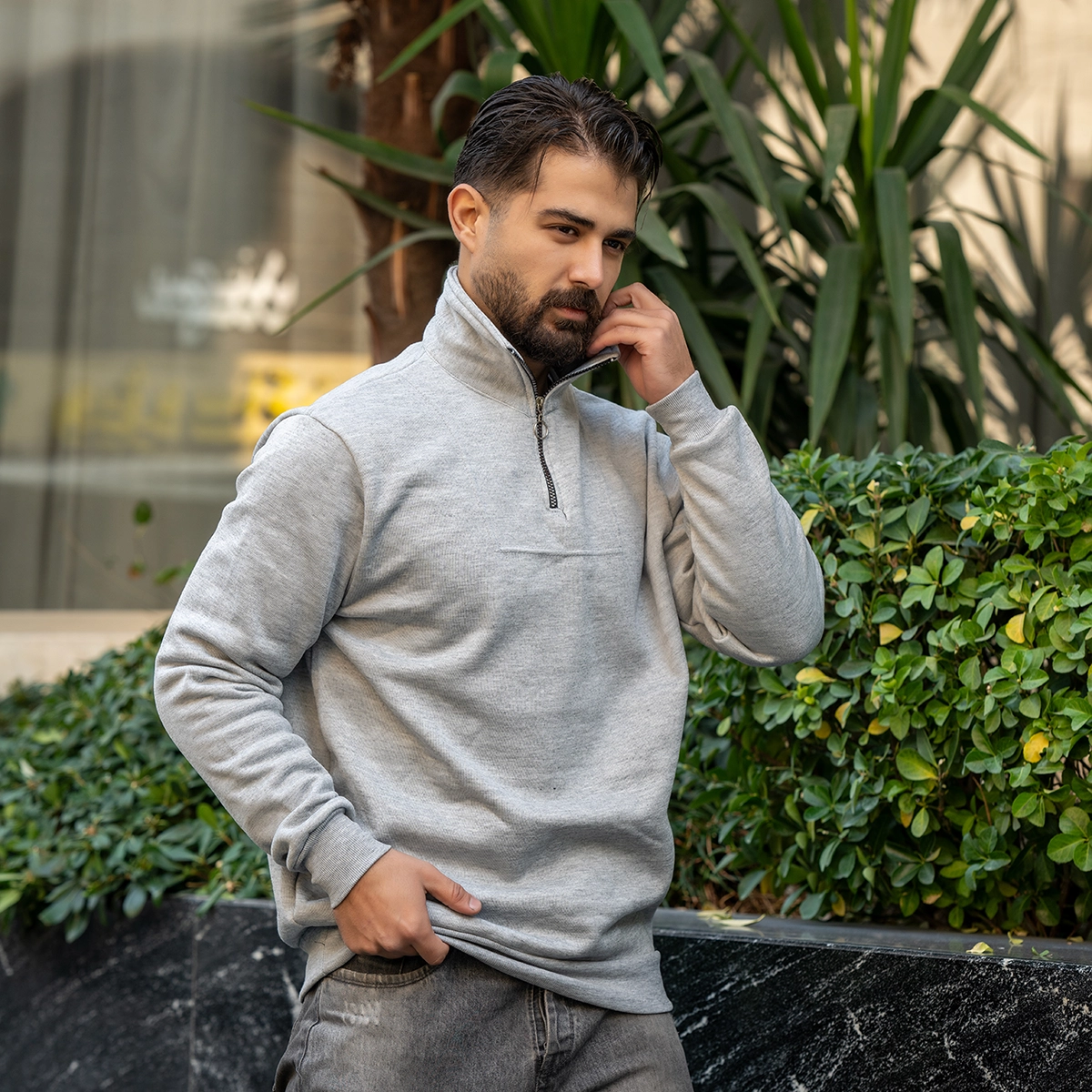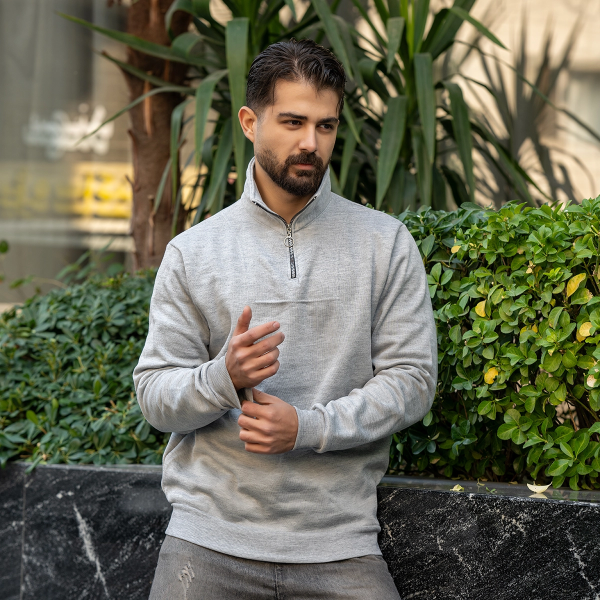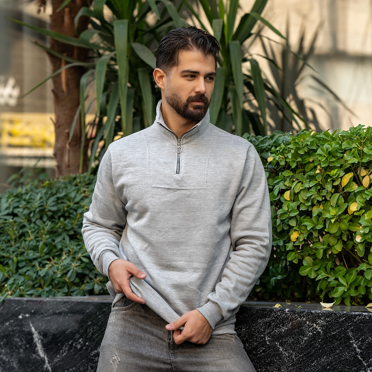 هودی نیم زیپ مردانه طوسی مدل Shobin