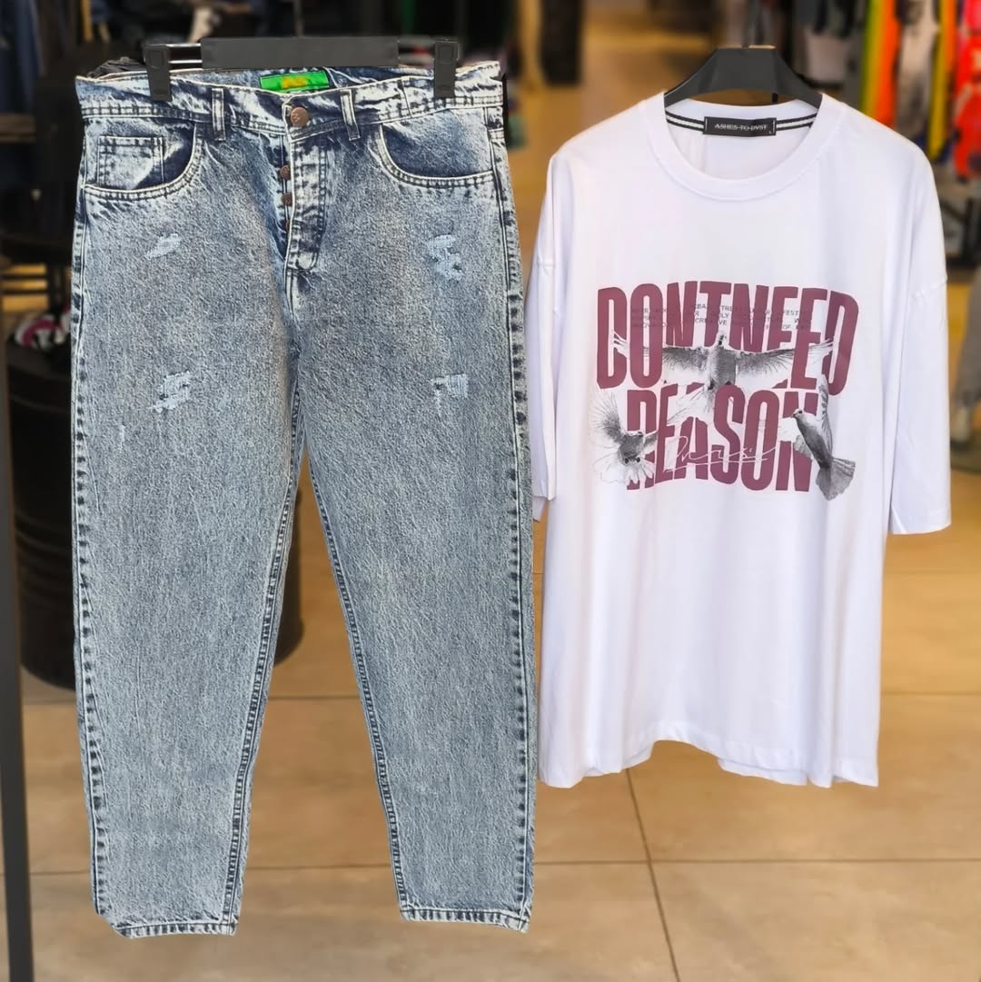 شلوار جین مام استایل مردانه آبی مدل Barad