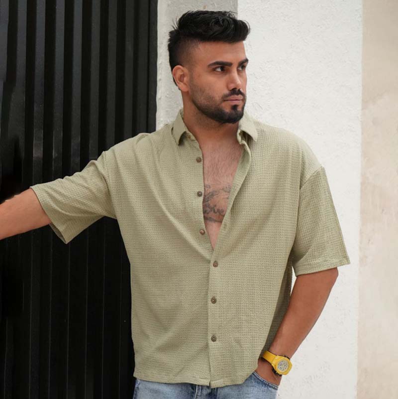 پیراهن مردانه باکسی سوزنی سبز