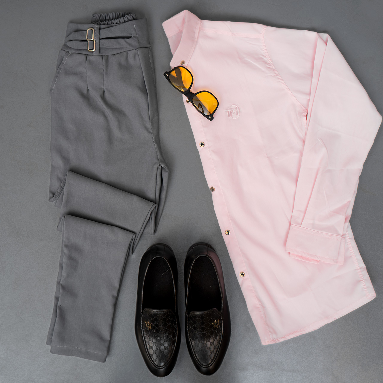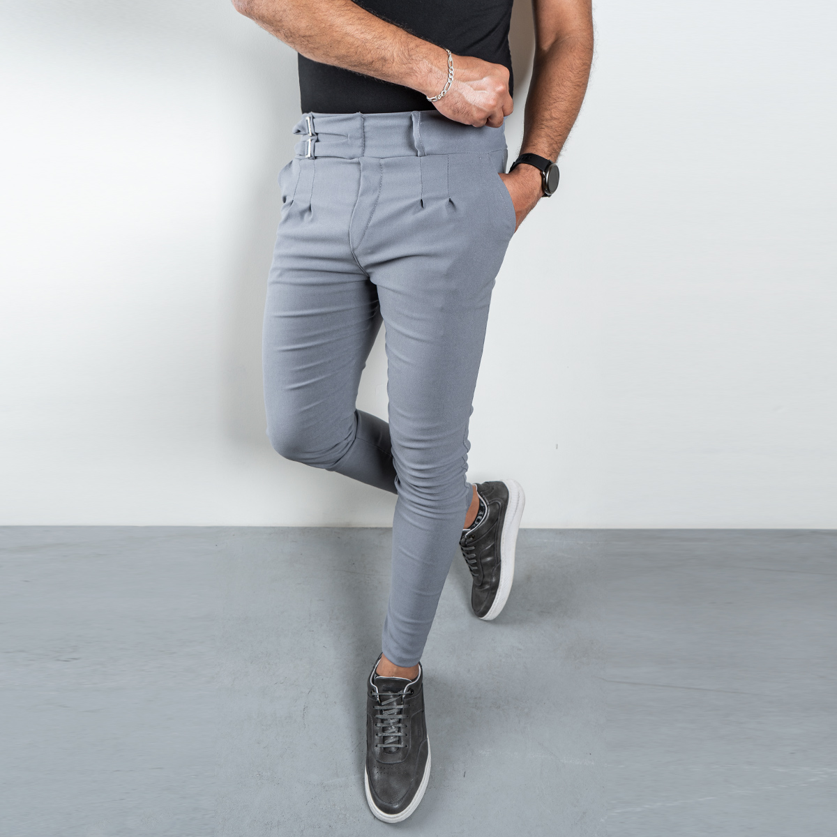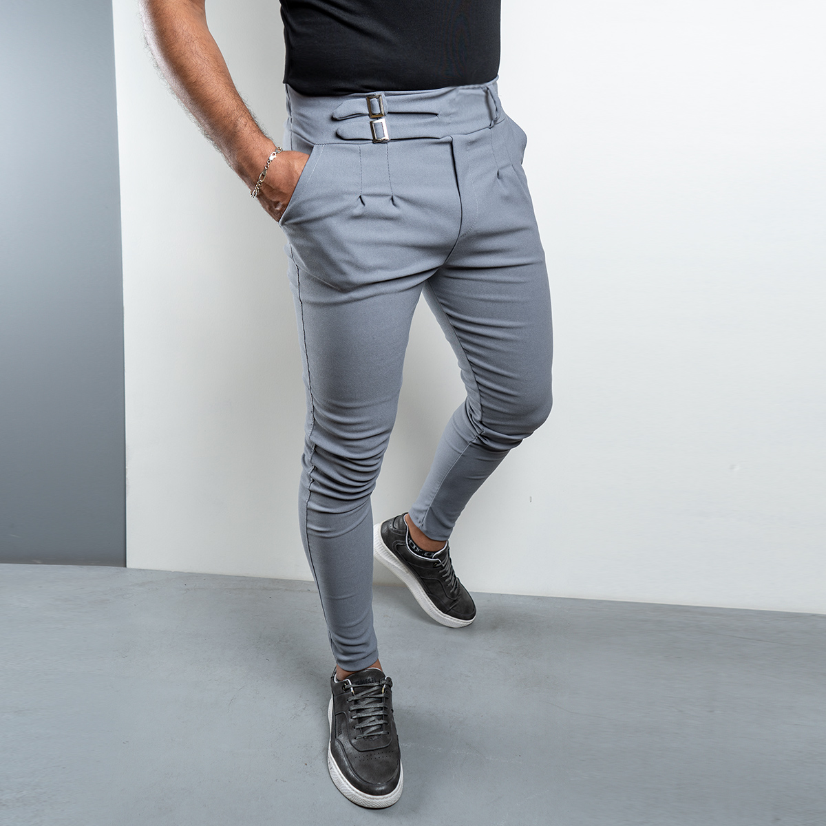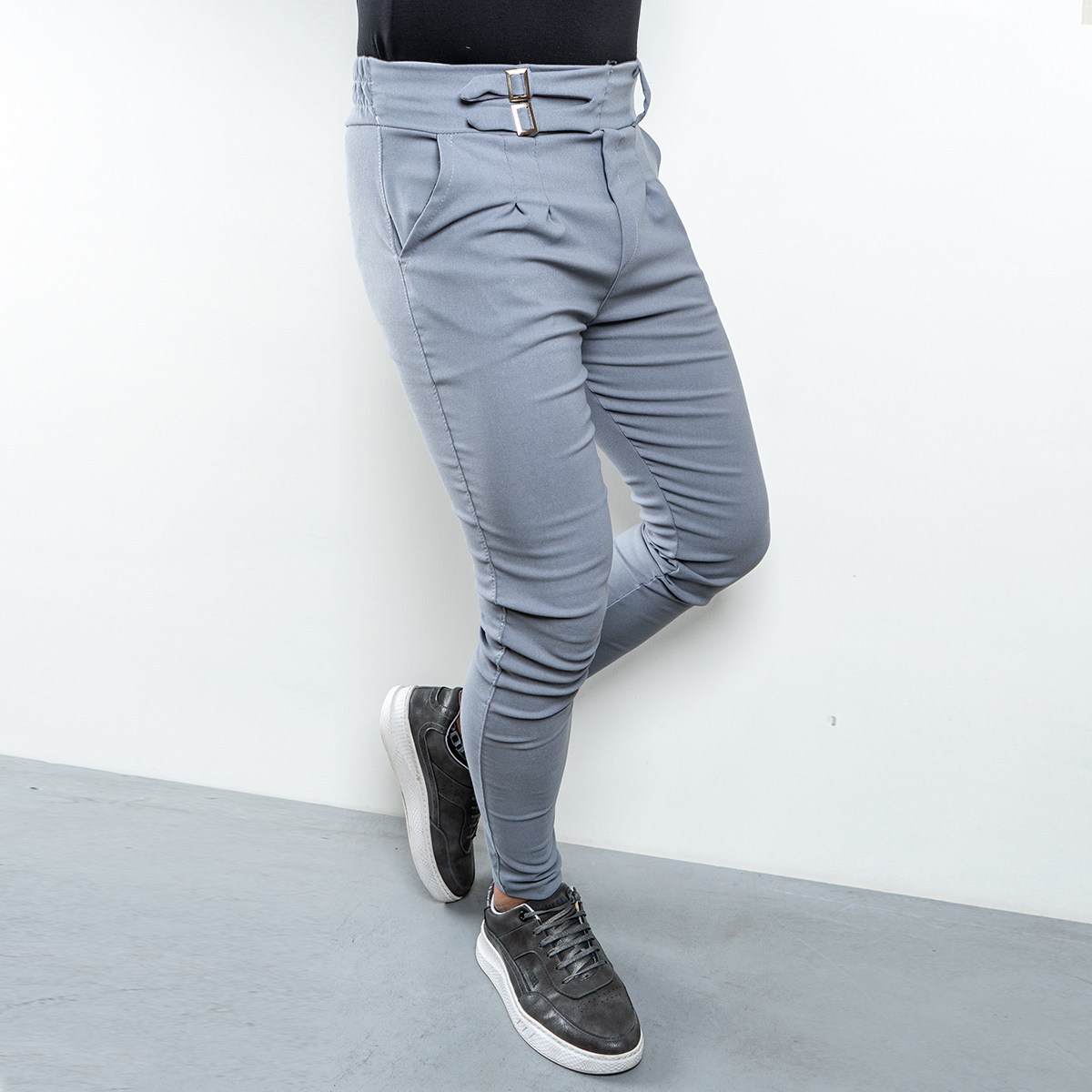 شلوار دو سگك طوسي روشن مردانه مدل Migel