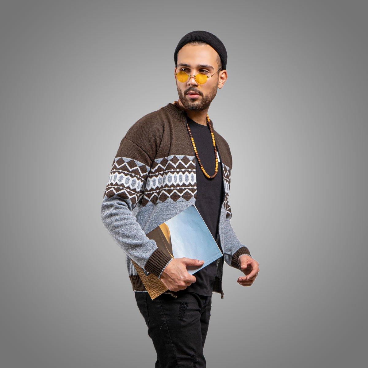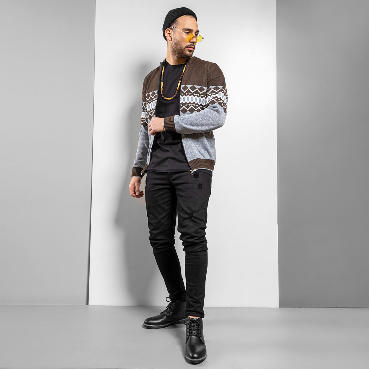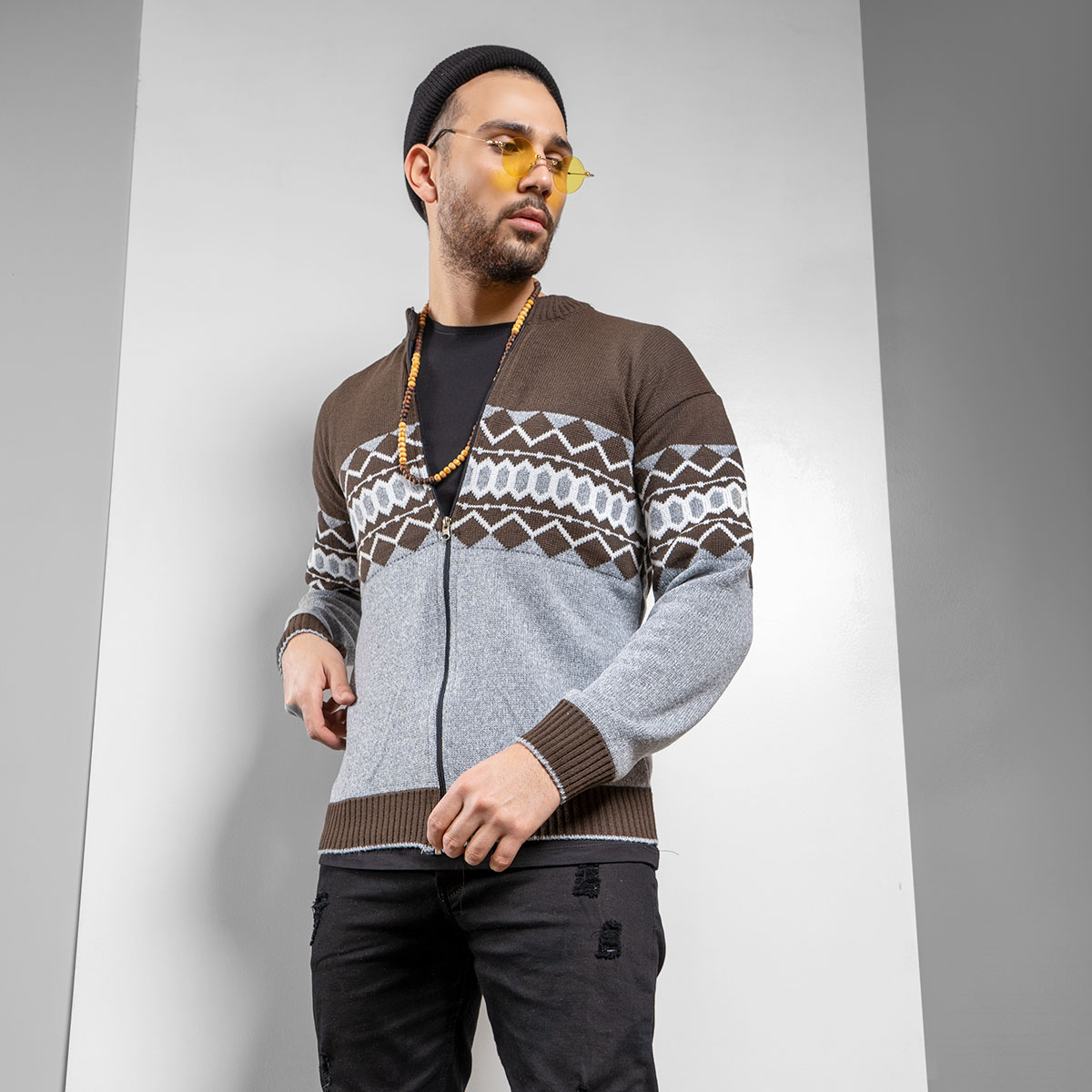 سوئيشرت بافت قهوه اي طوسي مردانه مدل Ezad