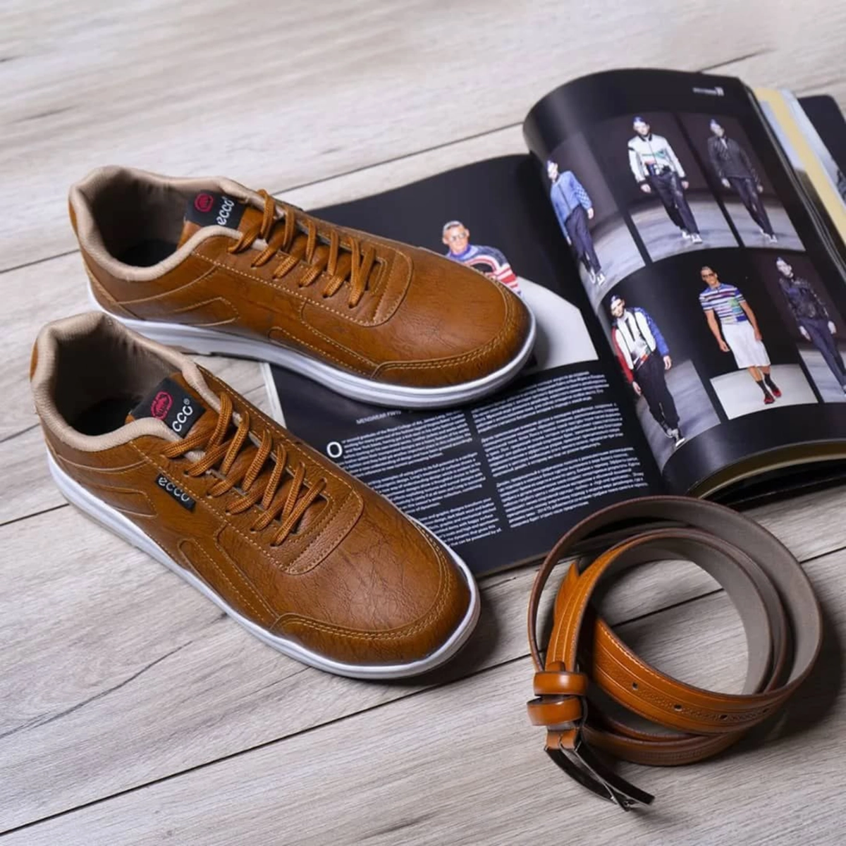 كفش مردانه ecco عسلي مدل Viksa