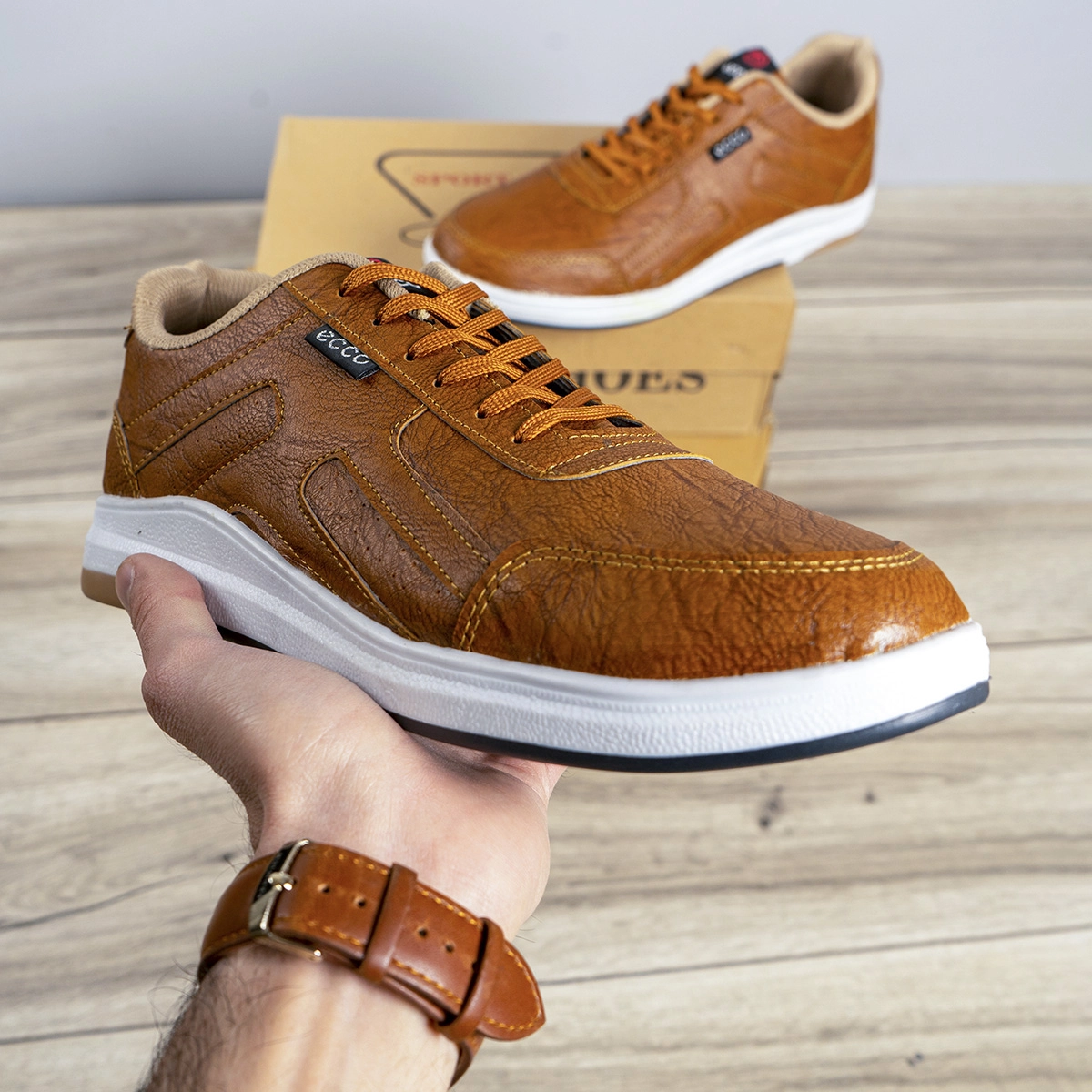 کفش مردانه ecco عسلی مدل Viksa