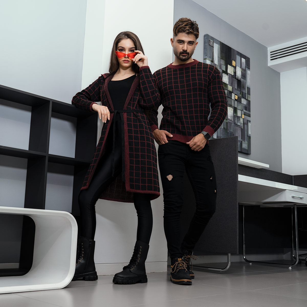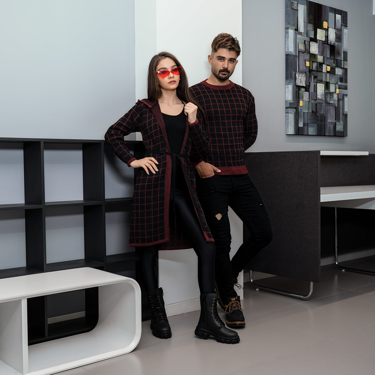 رنگبندی : مشکی - زرشکی (طرح 4 خانه)