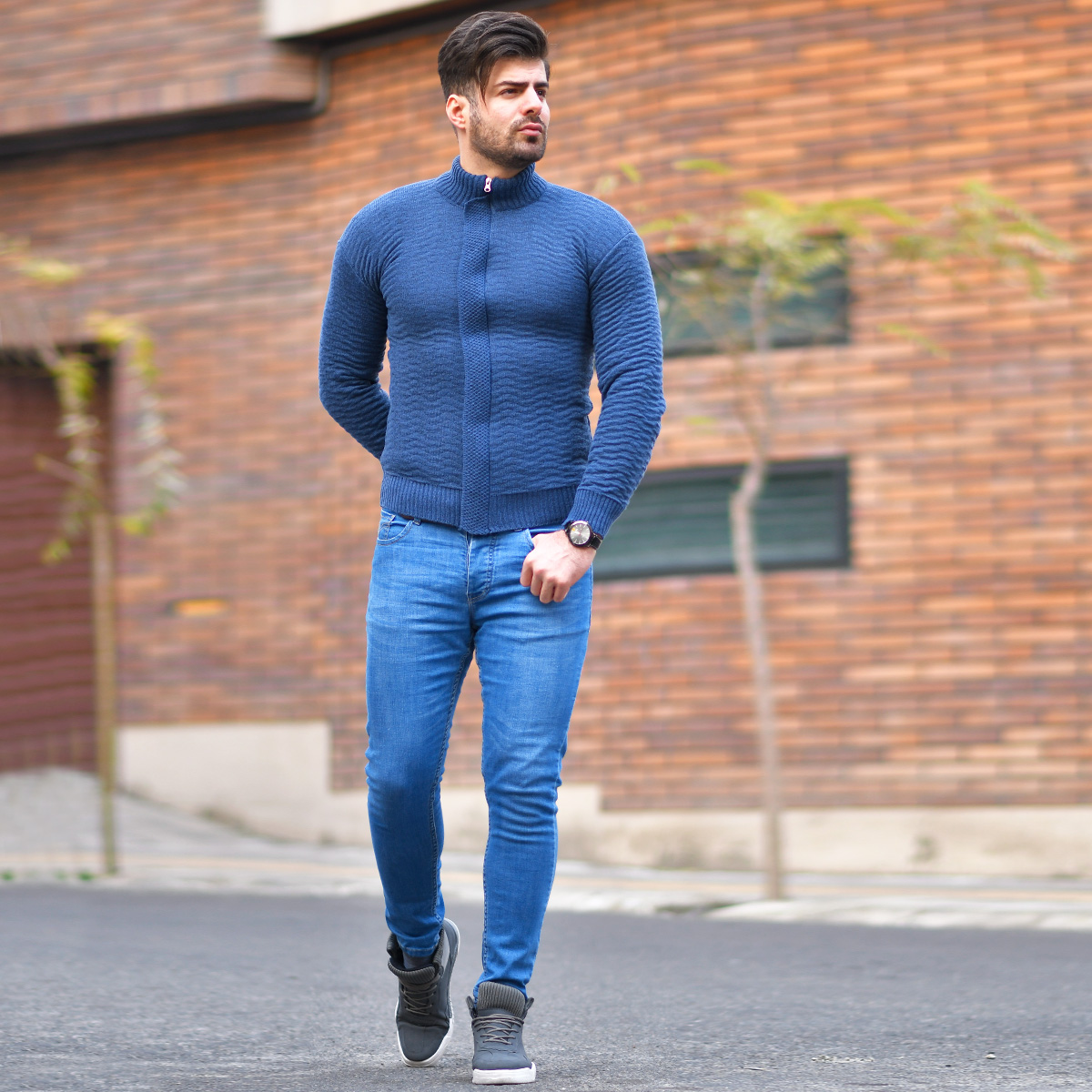 سوئیشرت بافت سرمه ای مردانه مدل Jenly