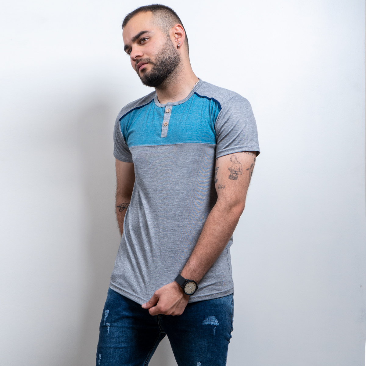 تیشرت مردانه طوسی تیره آبی مدل Ratim(T)